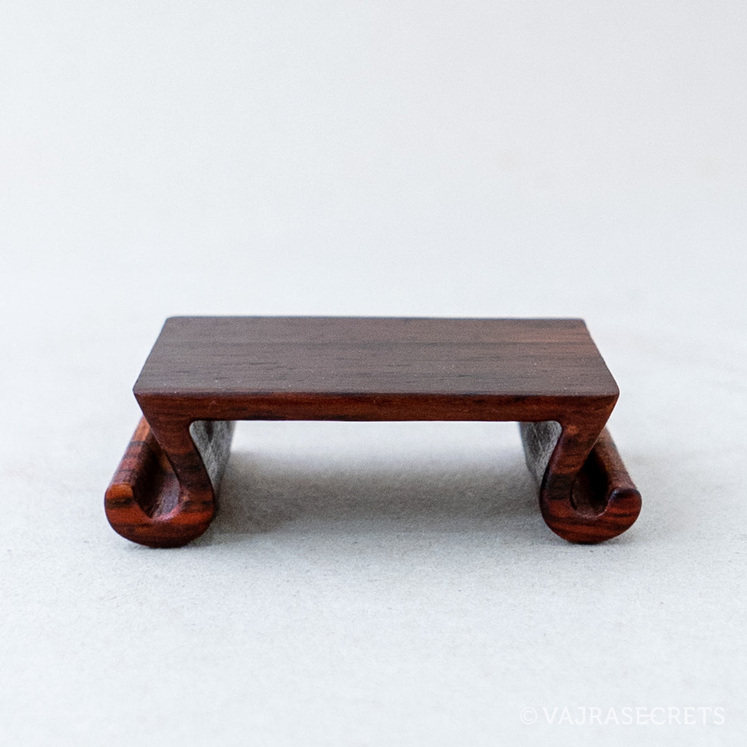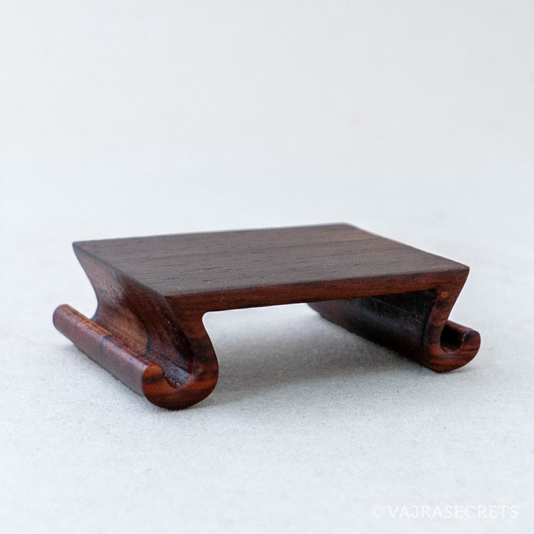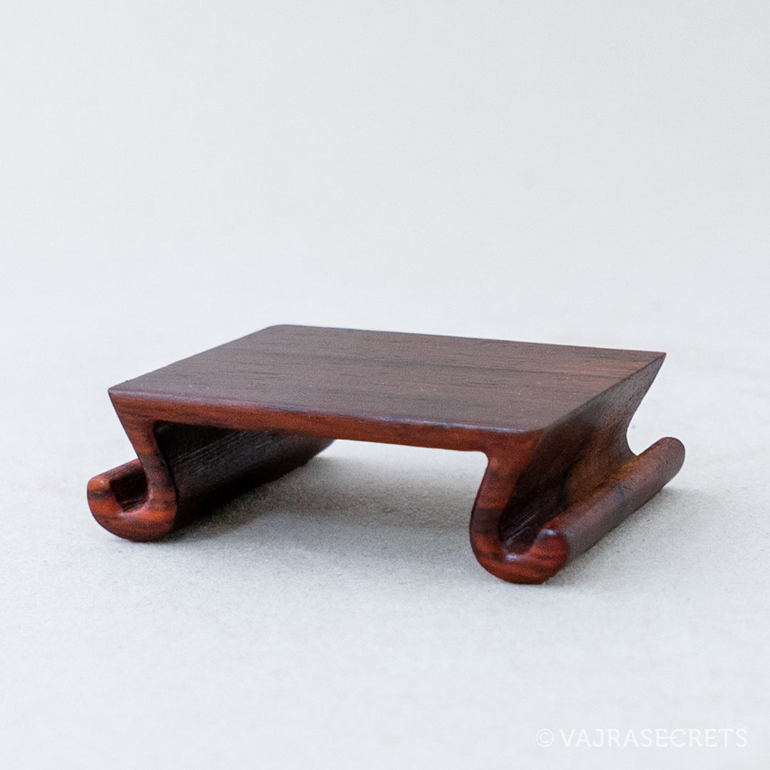 A miniature decorative stand crafted from Chinese rosewood. Use as a platform for miniature deity statues, tsatsas, small crystals, or to bring some oriental charm into your home.