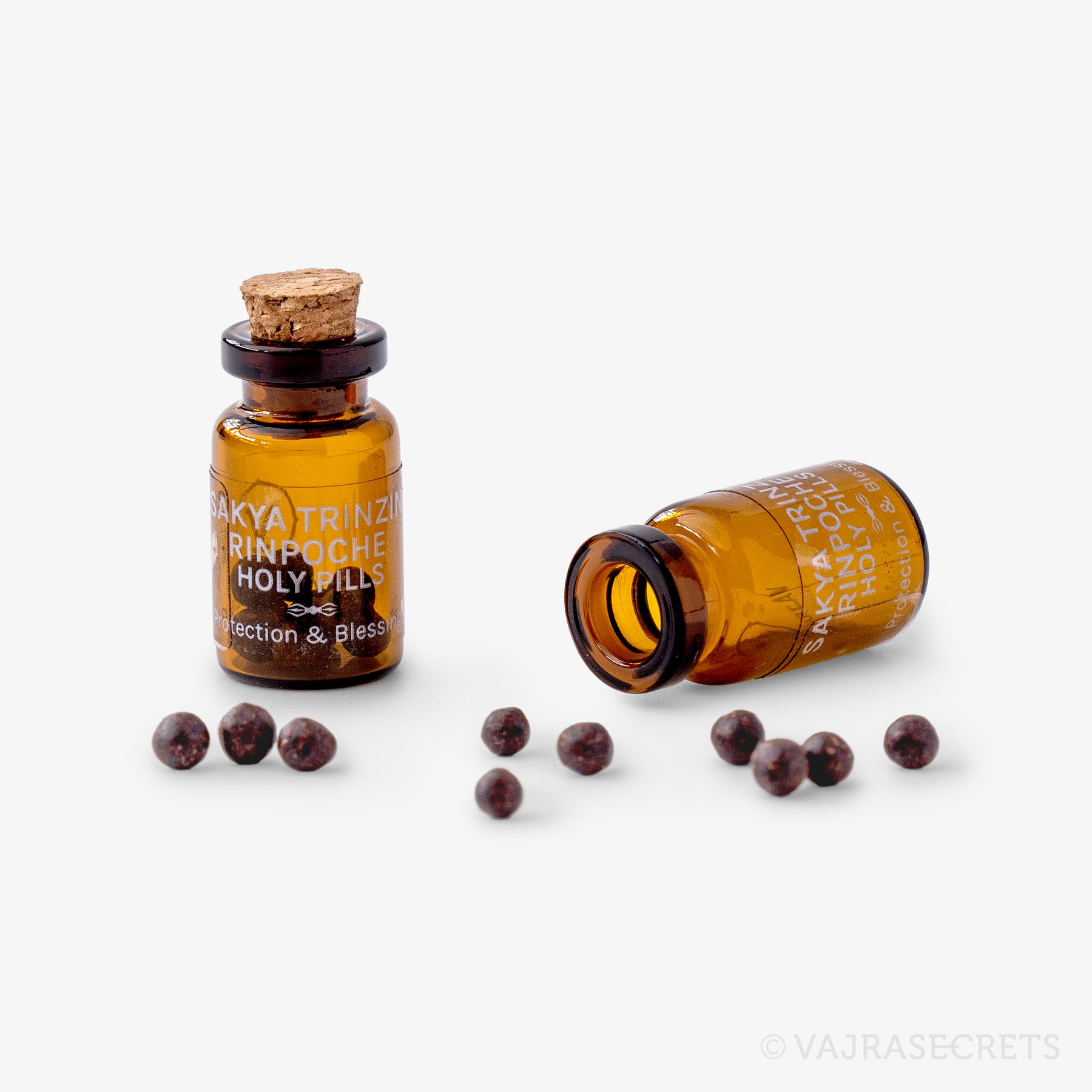 Handmade by monks from traditional Tibetan substances and medicinal herbs, Sakya Trizin Holy Rilbus (holy pills) contain the essence of the relics of the Throne Holder of the Sakya school of Tibetan Buddhism.