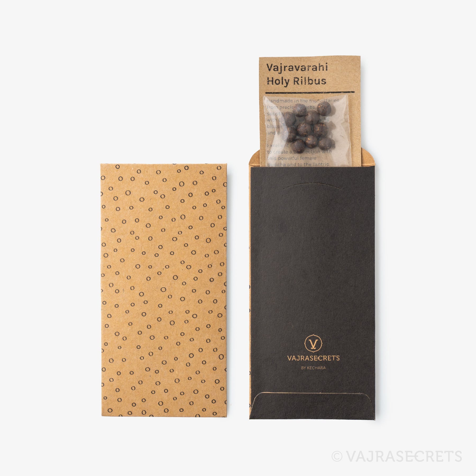 Handmade by monks from Himalayan mountain herbs and other traditional substances, Vajravarahi Holy Rilbus (holy pills) are excellent for anyone seeking to create a connection with this powerful female Buddha and for those aspiring to advance to higher tantric practices such as hers.