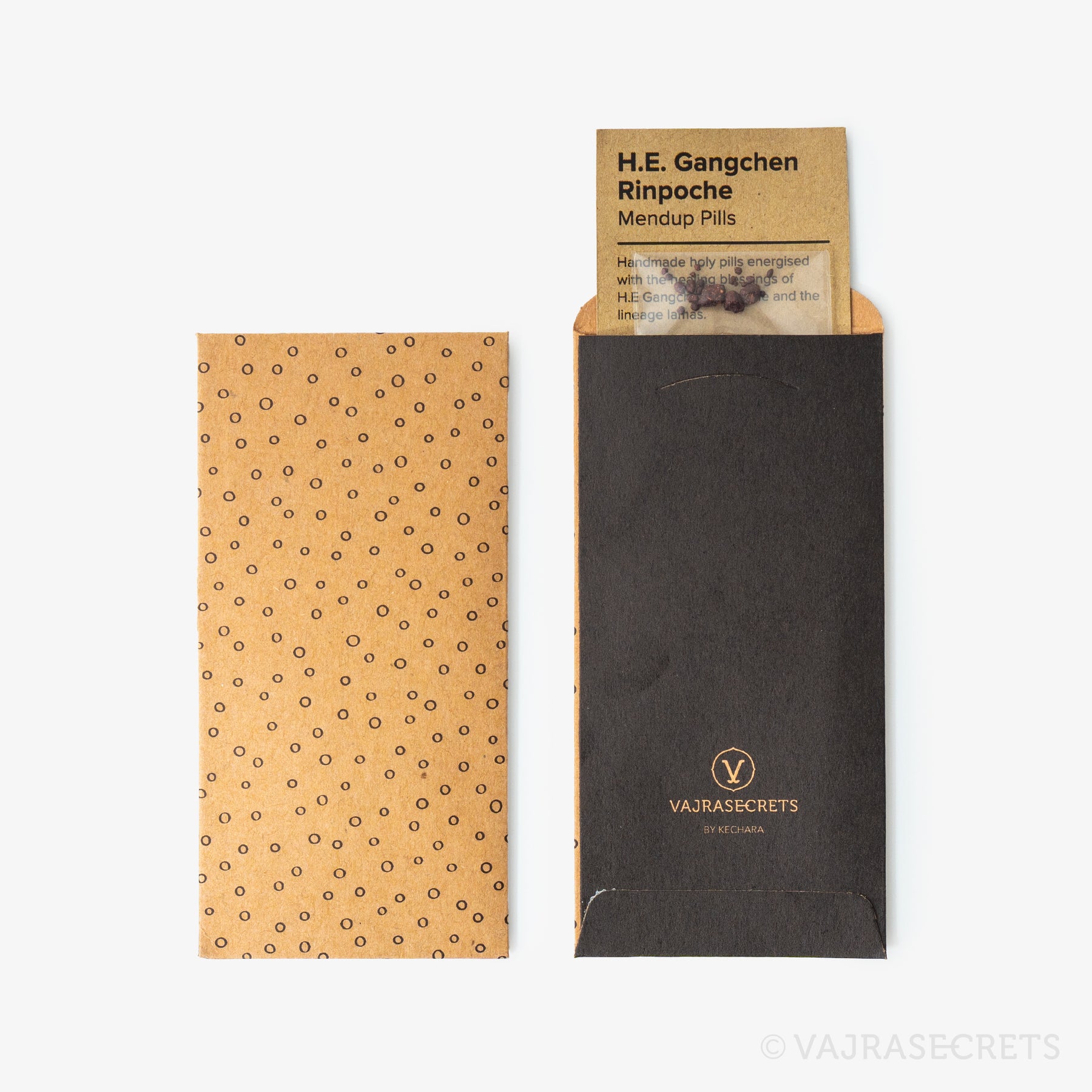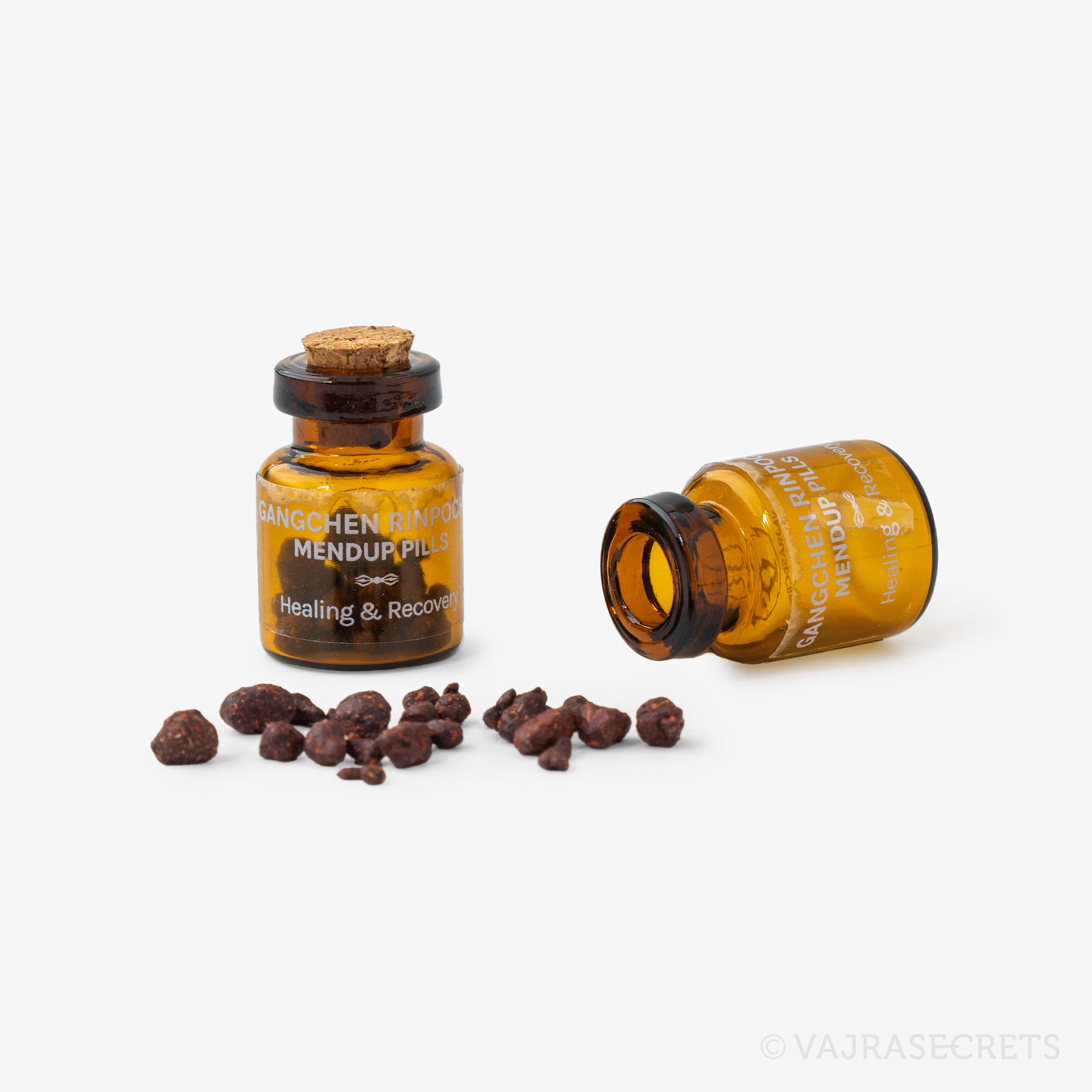 Handmade by monks from traditional Tibetan substances and medicinal herbs, Gangchen Rinpoche Mendup Rilbus (holy pills) contain medicinal substances that carry the blessings of the lineage lamas in general, and especially those of the eminent healing mahasiddha, His Eminence Drubwang Gangchen Rinpoche, who is believed to be an emanation of the Medicine Buddha. Mendup rilbus are traditionally consumed by those with faith as a type of medicine for general ailments and health complaints.