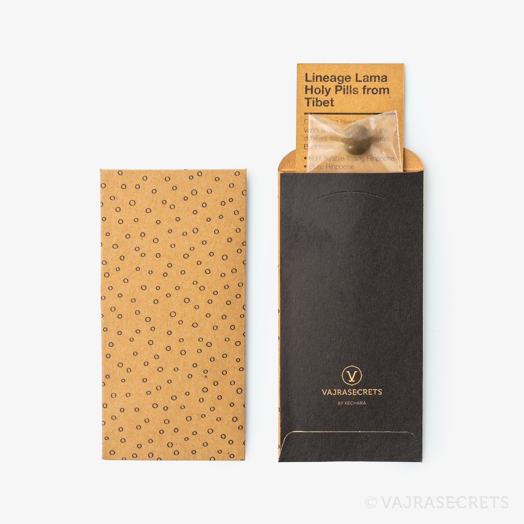 Handmade by monks from traditional Tibetan substances and medicinal herbs, Lineage Lama Holy Rilbu (holy pills) contain the essence of blessed relics, and blessings of many high lamas from all four schools of Tibetan Buddhism (Nyingma, Sakya, Kagyu and Gelug) including illustrious masters such as: