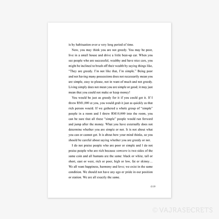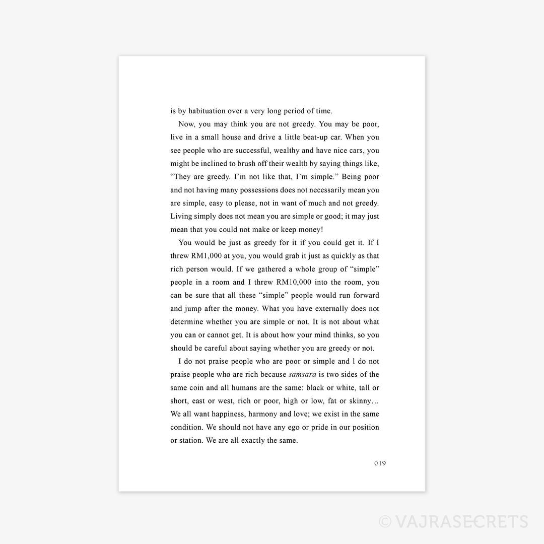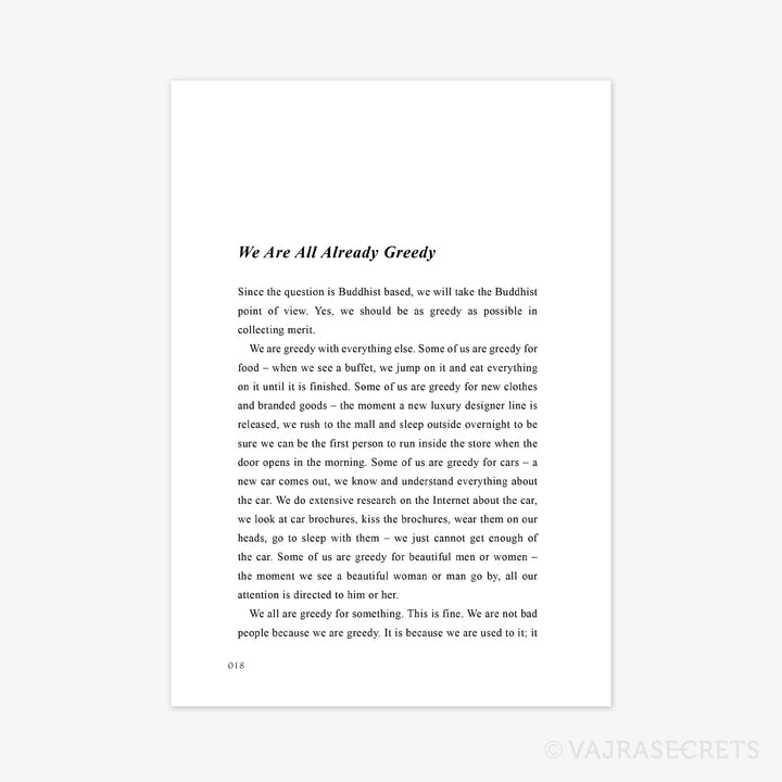 In this classic teaching, Tsem Rinpoche gives us practical, lively examples for how we can gain all the wealth we could ever want, hassle free, and live life to the fullest, without any fear or inhibitions. Be Greedy will reveal secrets for achieving all the things you've ever wanted - don't be surprised that it's actually much easier than you think...