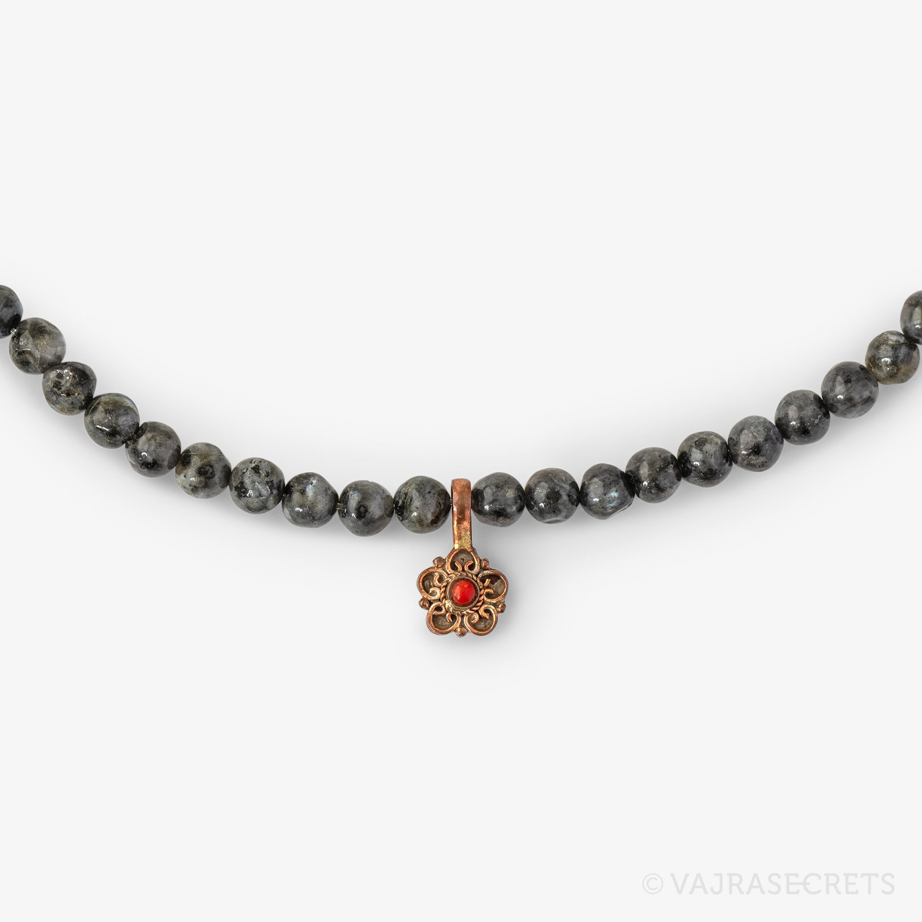 Add some ethnic charm and practicality to your mala with this Tibetan-style BUM counter. Featuring faux coral/turquoise stones set in a flower motif, this handcrafted BUM counter is used in tandem with traditional mala counters to keep track of mantra counts during extended prayer sessions and long retreats.