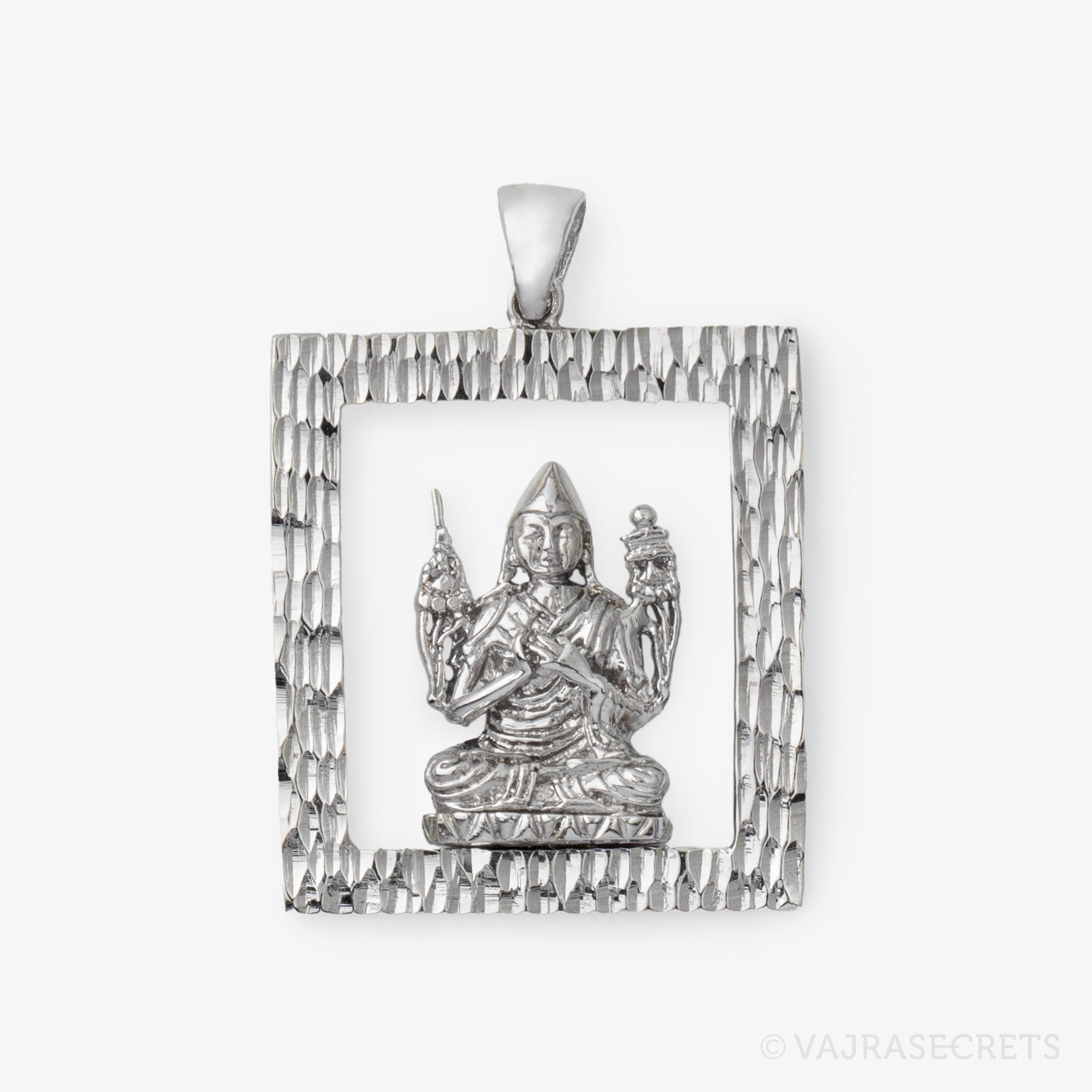 A delicate Lama Tsongkhapa mounted on a hollow square frame accented with diamond cut finish. From one of The Emptiness Collection, this pendant combines understated elegance with everyday wearability. Wear him close to your heart and be blessed with stabilisation of wealth, healing of depression and sickness, protection from negative energies, enhancement of intelligence, clarity of mind, deep joy and peace.