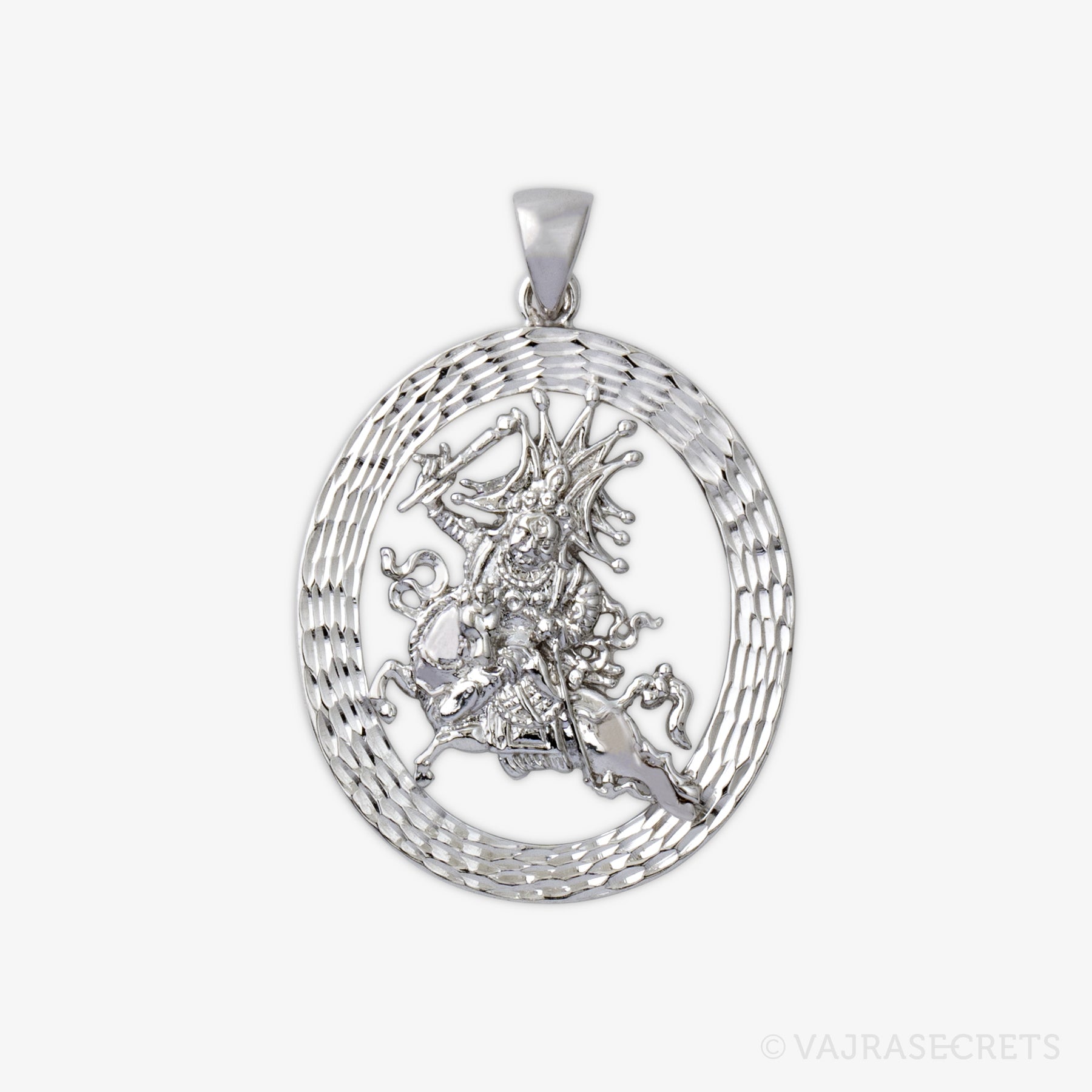 An exquisite Setrap mounted on a hollow oval frame with diamond cut finish. From one of The Emptiness Collection, this pendant combines understated elegance with everyday wearability. Wear him close to your heart and be blessed with protection from unseen harm and negative entities, and brings swift assistance for life's daily challenges.