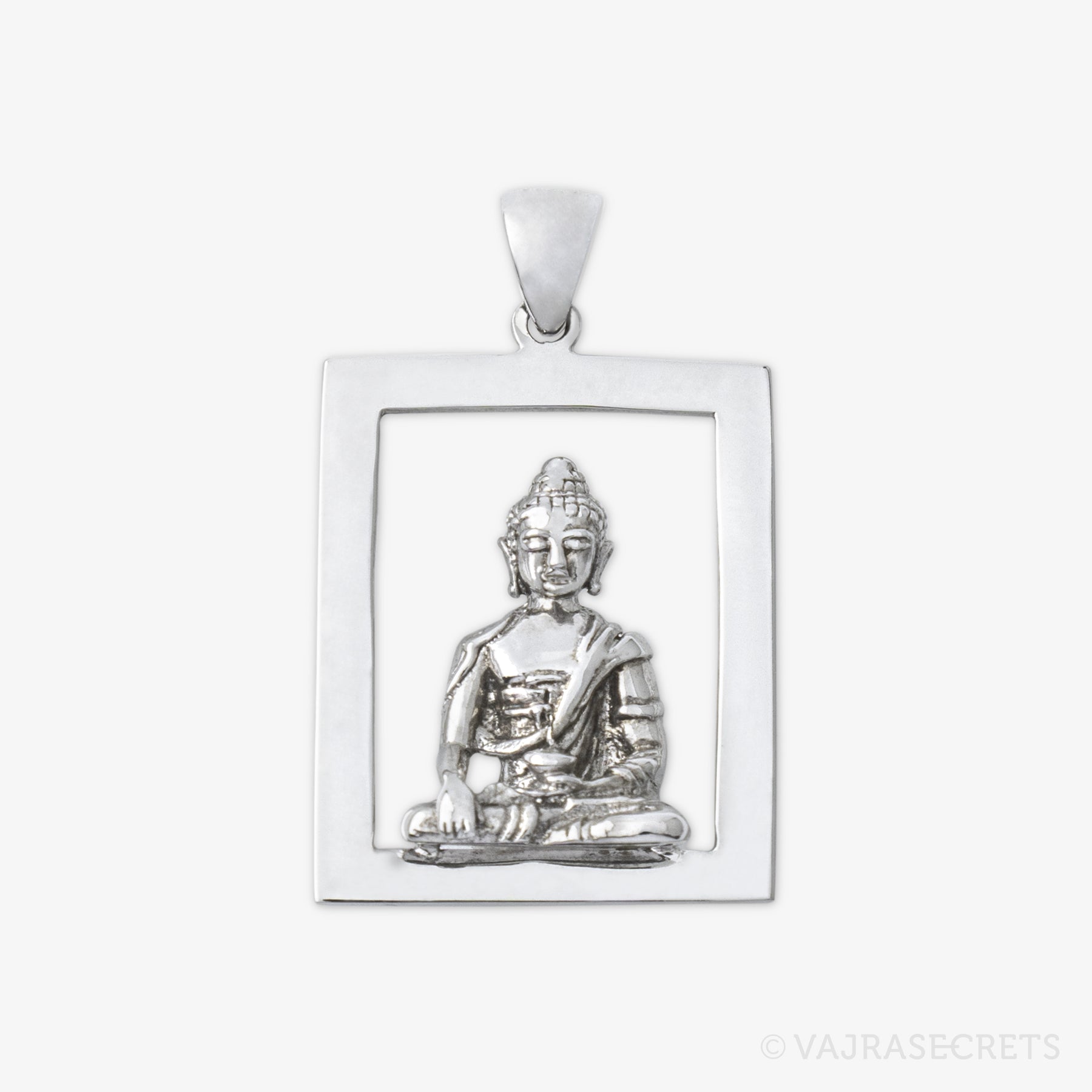 A three-dimensional Buddha Shakyamuni mounted on a hollow rectangular frame, this pendant from The Emptiness Collection combined understated elegance with everyday wearability. Wear him close to your heart and be blessed with the energy of the founder of Buddhism, which will also bring his blessings to all who see it and plant the seeds of Buddhism in their minds.