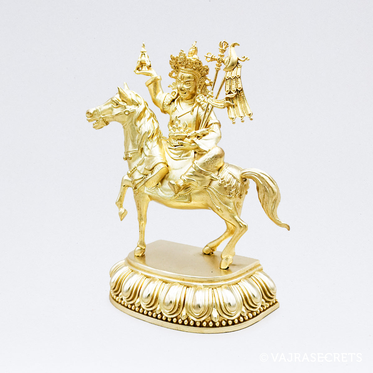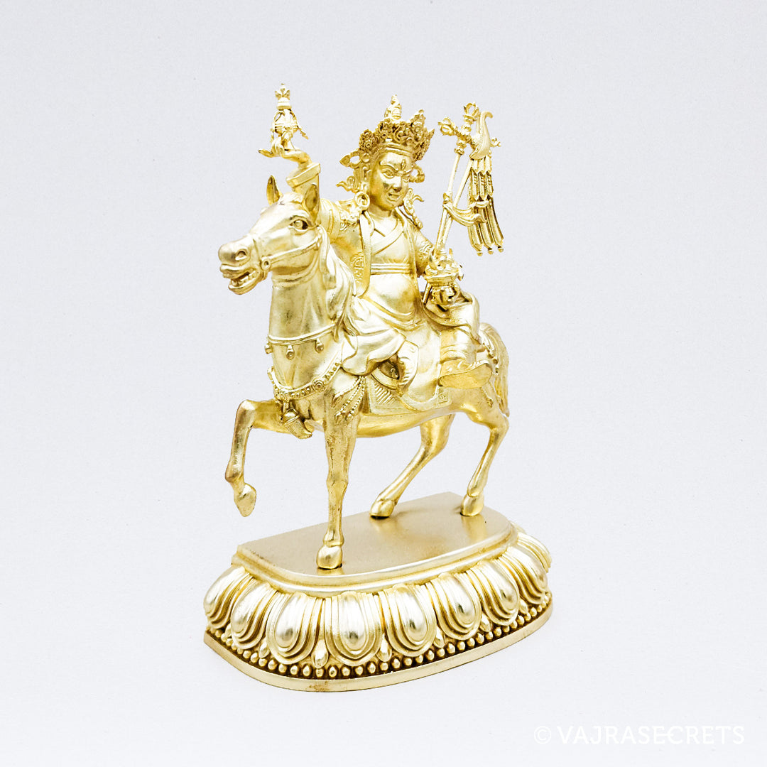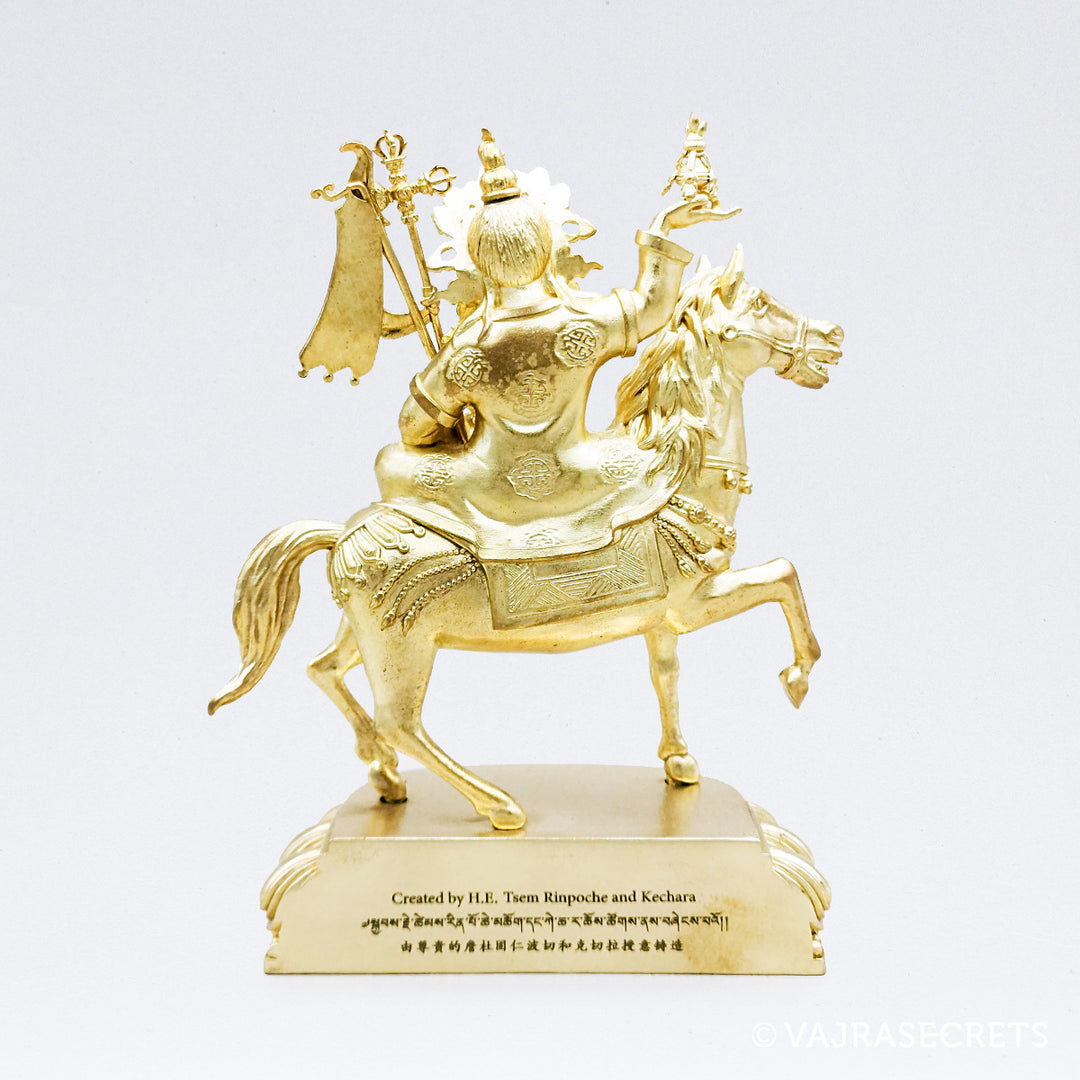 A gold-finish brass statue of Gyenze, the “increase” form of Dorje Shugden, revered by many for his ability to increase material resources, lifespan, merit and realisations. His image also calms the immediate environment, helps overcome life's obstacles, and grants protection from negative energies. It is an excellent focal point and meditation aid for your daily practice.