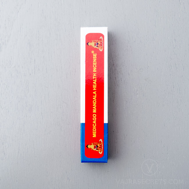 Medicago Mandala Health Incense Sticks are traditionally prepared from natural herbal ingredients including Dracocephalum tanguticum maxim, a potent medicinal herb from Tibet's mountainous plateaus. This therapeutic herbal incense should be burnt and inhaled to treat phlegm disorders and dust allergies and cleanse the environment.