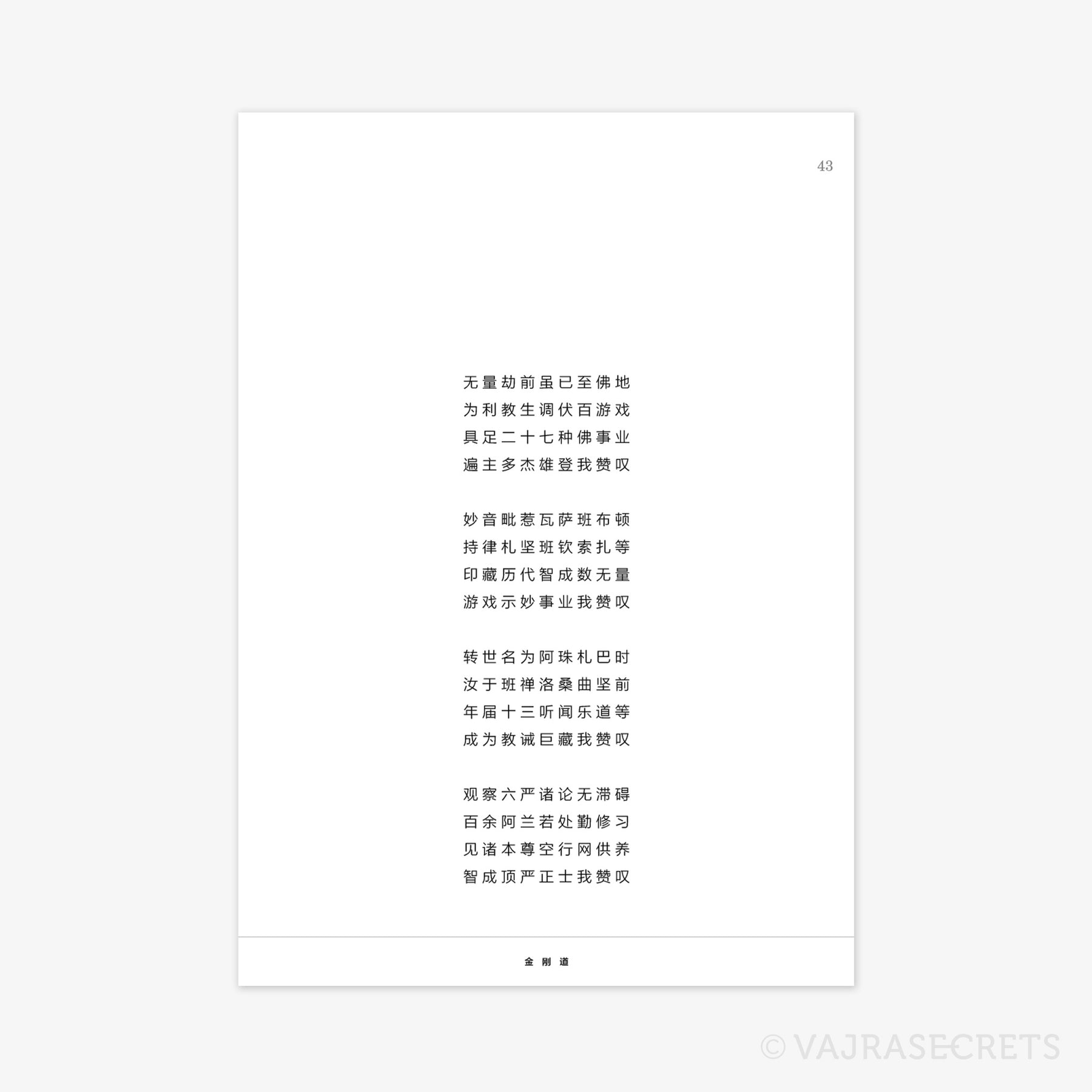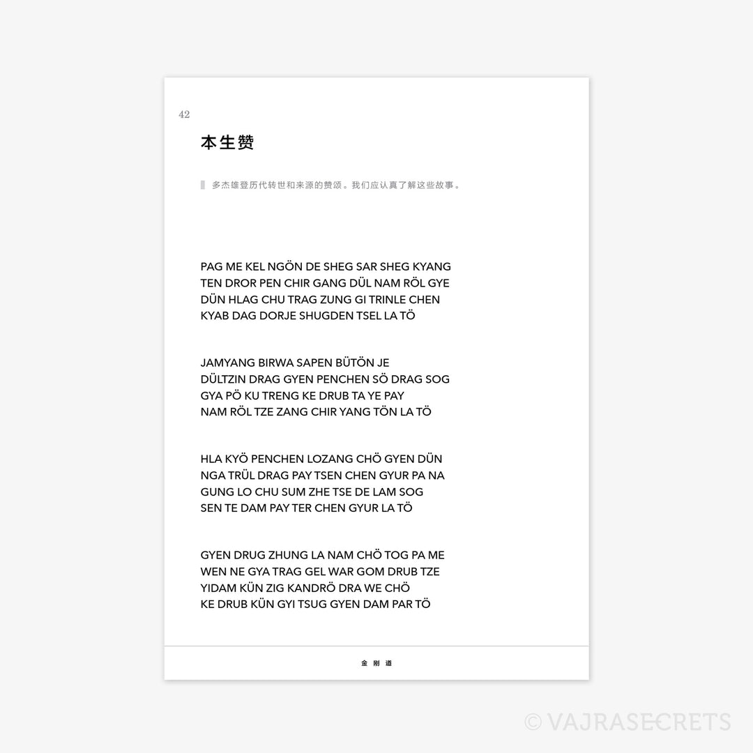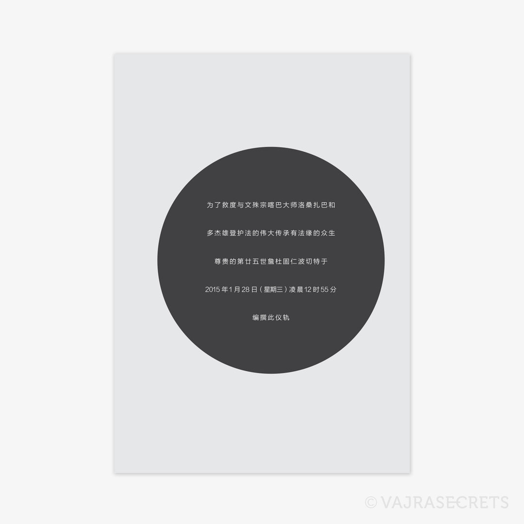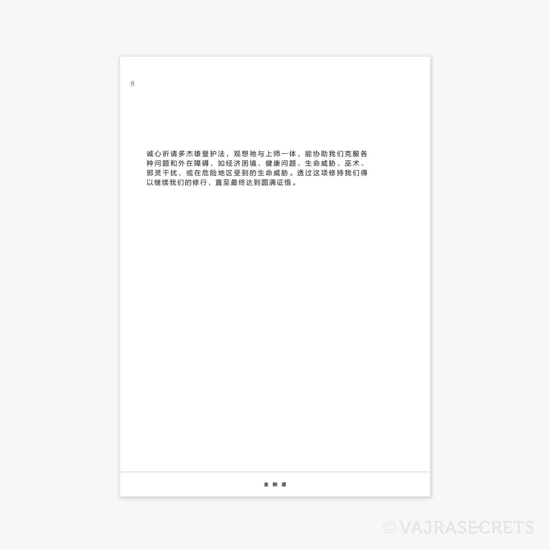 仪轨后半部为智慧护法多杰雄登的祈愿文。修持多杰雄登日常仪轨,能协助我们消除外在的障碍、困境和难题,让内在的特质得以生起。