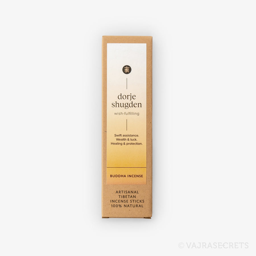 Dorje Shugden Incense Sticks are handmade from sandalwood and 12 other rare medicinal herbs, oils, resins and spices in accordance with the instructions of H.H. Pabongka Rinpoche. When burnt, it releases a rich, woody and herbal aroma.