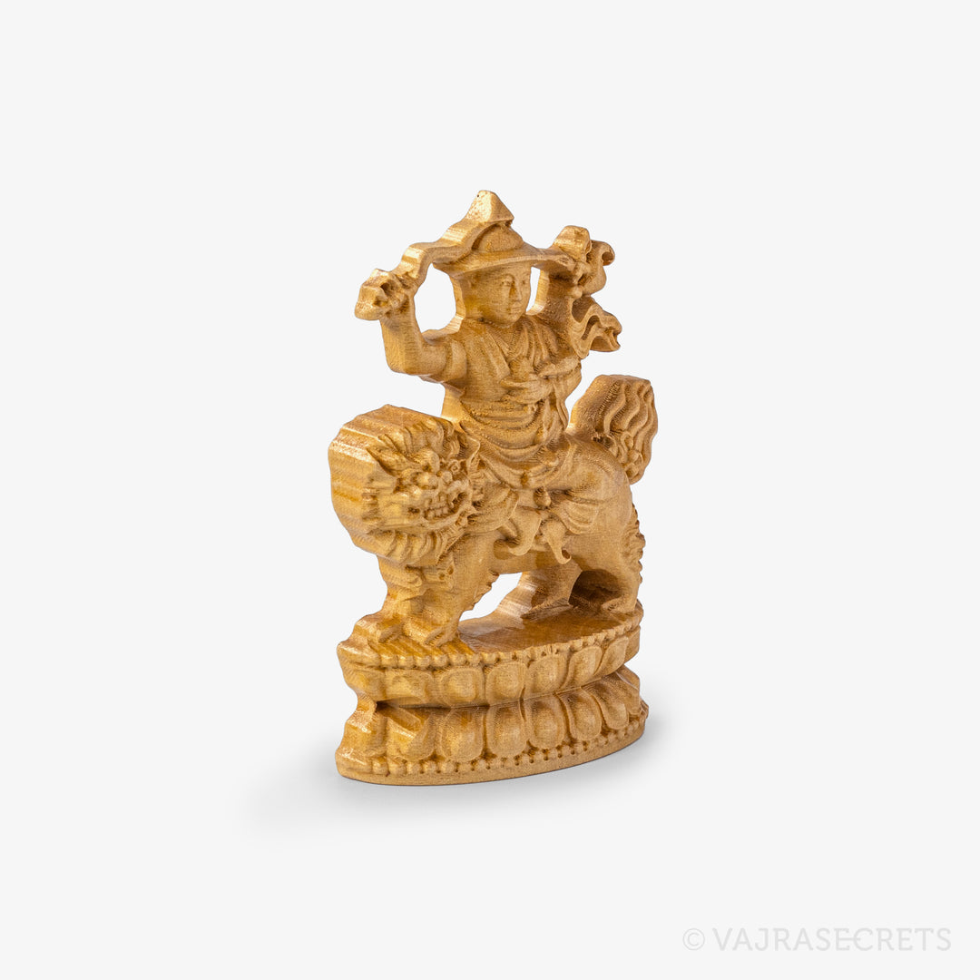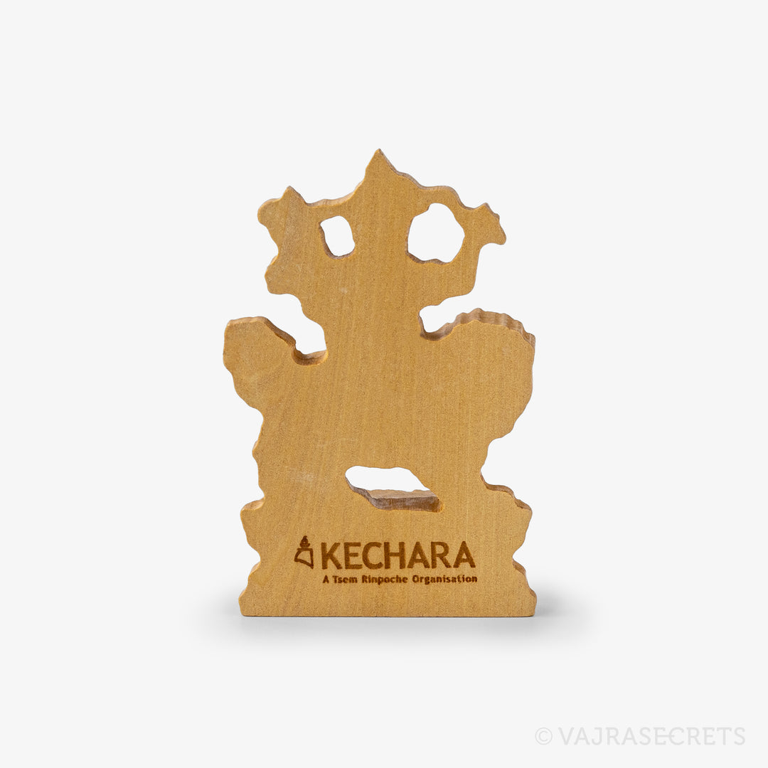 A wooden flatback statuette of Dorje Shugden, an emanation of Wisdom Buddha Manjushri, who grants powerful protection from negative energies and black magic, swiftly helps overcome life’s obstacles, and attracts the positive energies of wealth, peace and wisdom.