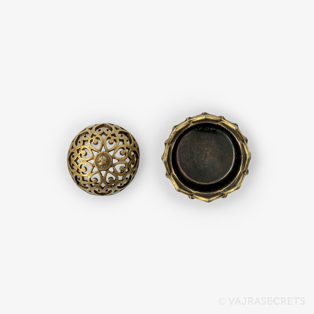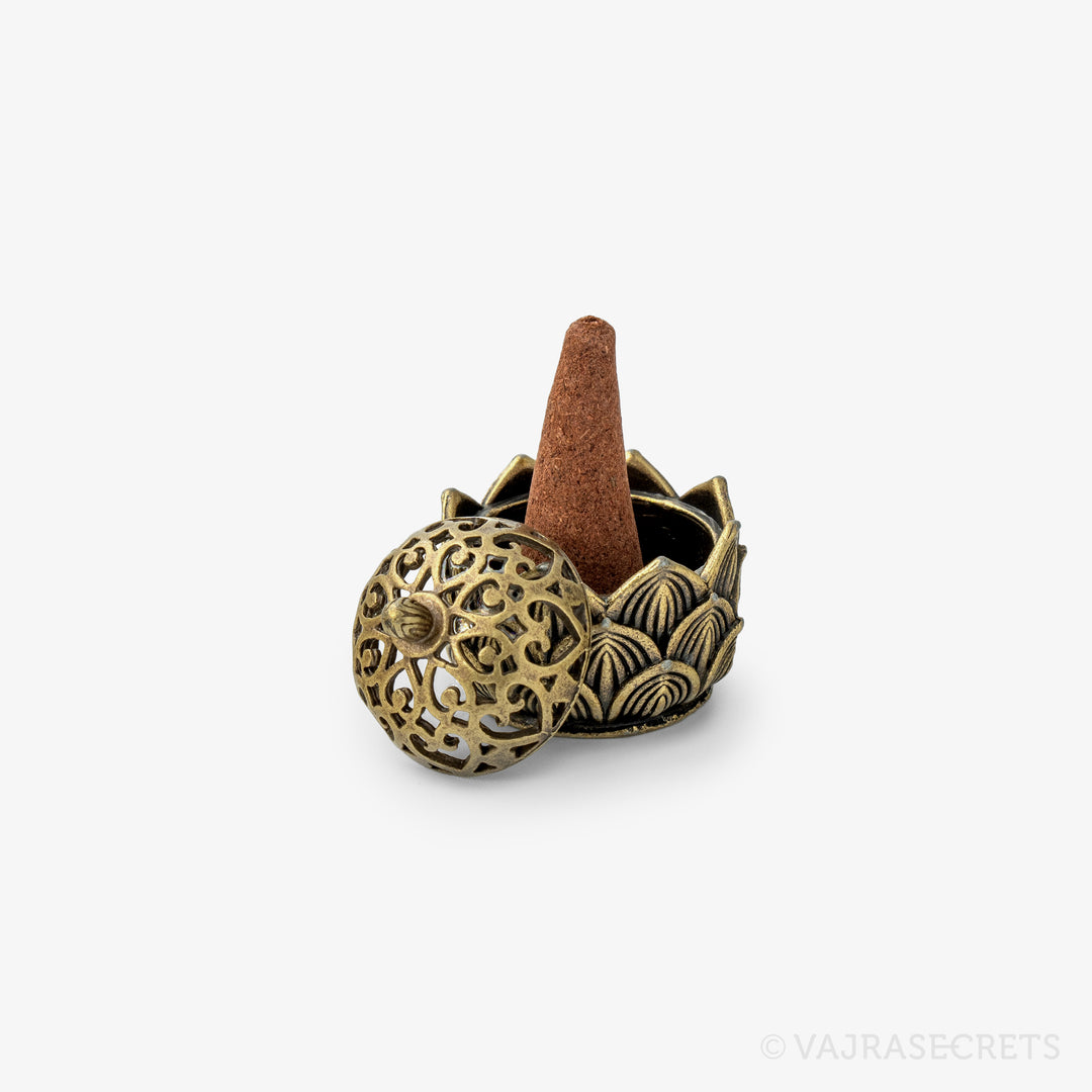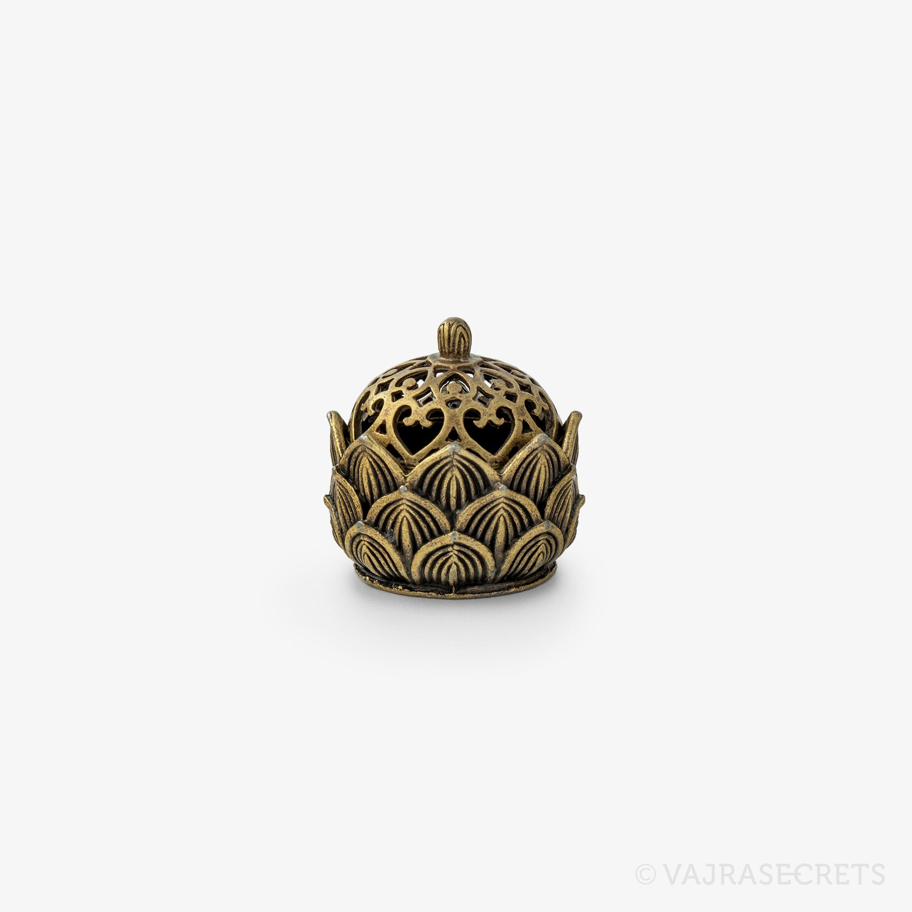 A miniature metal incense burner surrounded by a lotus petal motif. Lightweight and compact, it is ideal for travelling so you can meditate, make offerings or do space clearing rituals at any place, any time. Also suitable for the office so you can light incense and uplift the energy in your workspace.