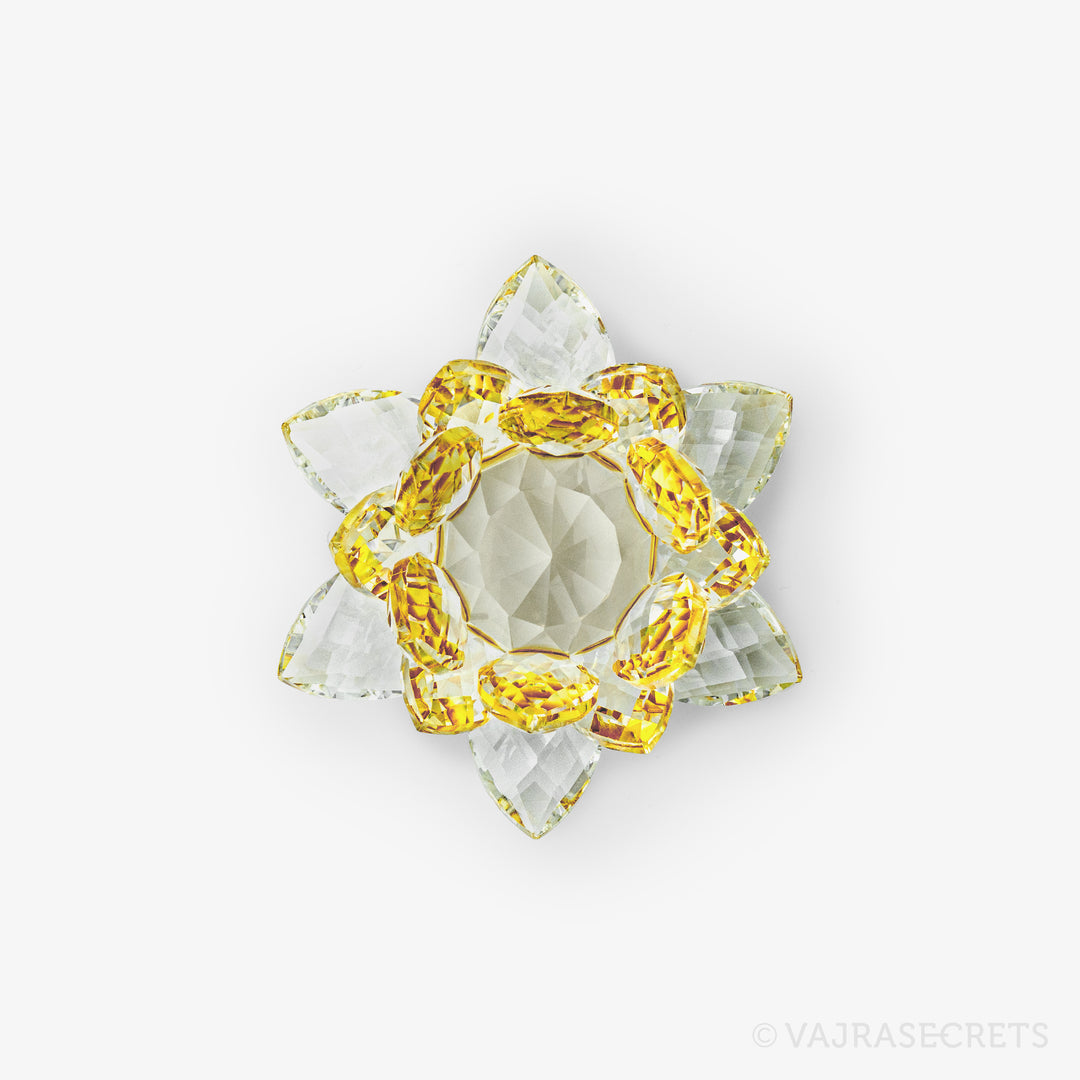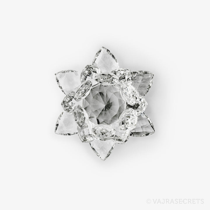 Create the causes to be reborn in pleasant environments by offering this prism-cut crystal lotus on your altar or shrine.