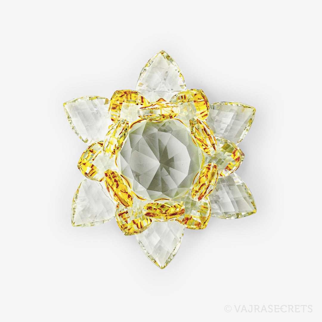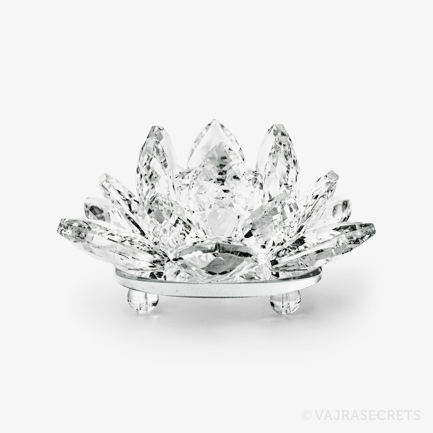 Create the causes to be reborn in pleasant environments by offering this prism-cut crystal lotus on your altar or shrine.