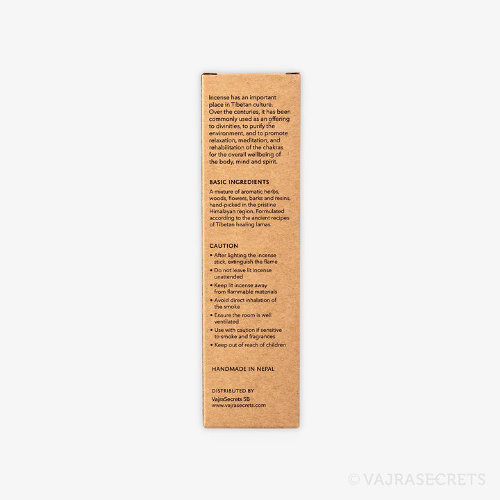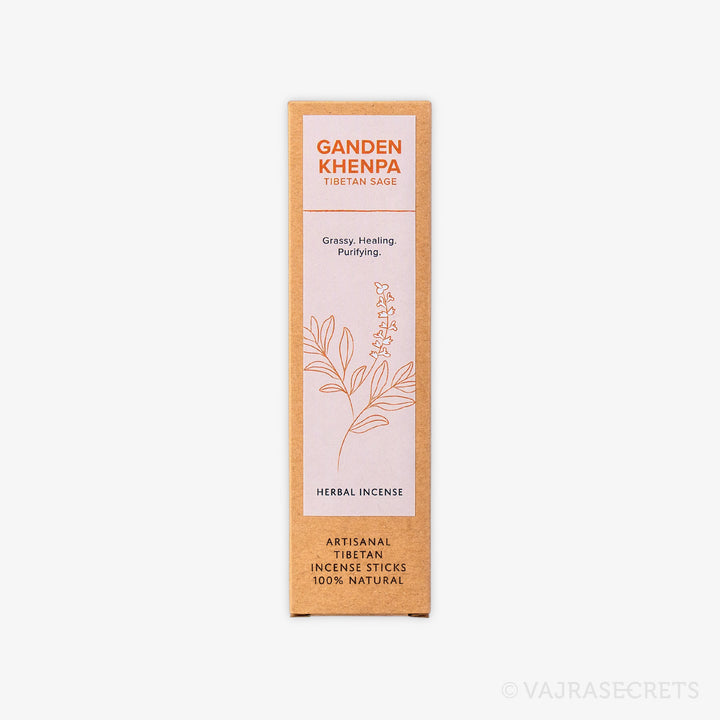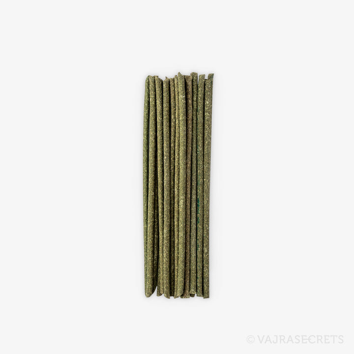 Ganden Khenpa Tibetan Incense Sticks are handmade from pure Ganden Khenpa grass harvested from the Himalayan mountains, Tibetan juniper wood, natural healing herbs, and other traditional ingredients. When burnt, it releases a distinct fresh, earthy and grassy scent.