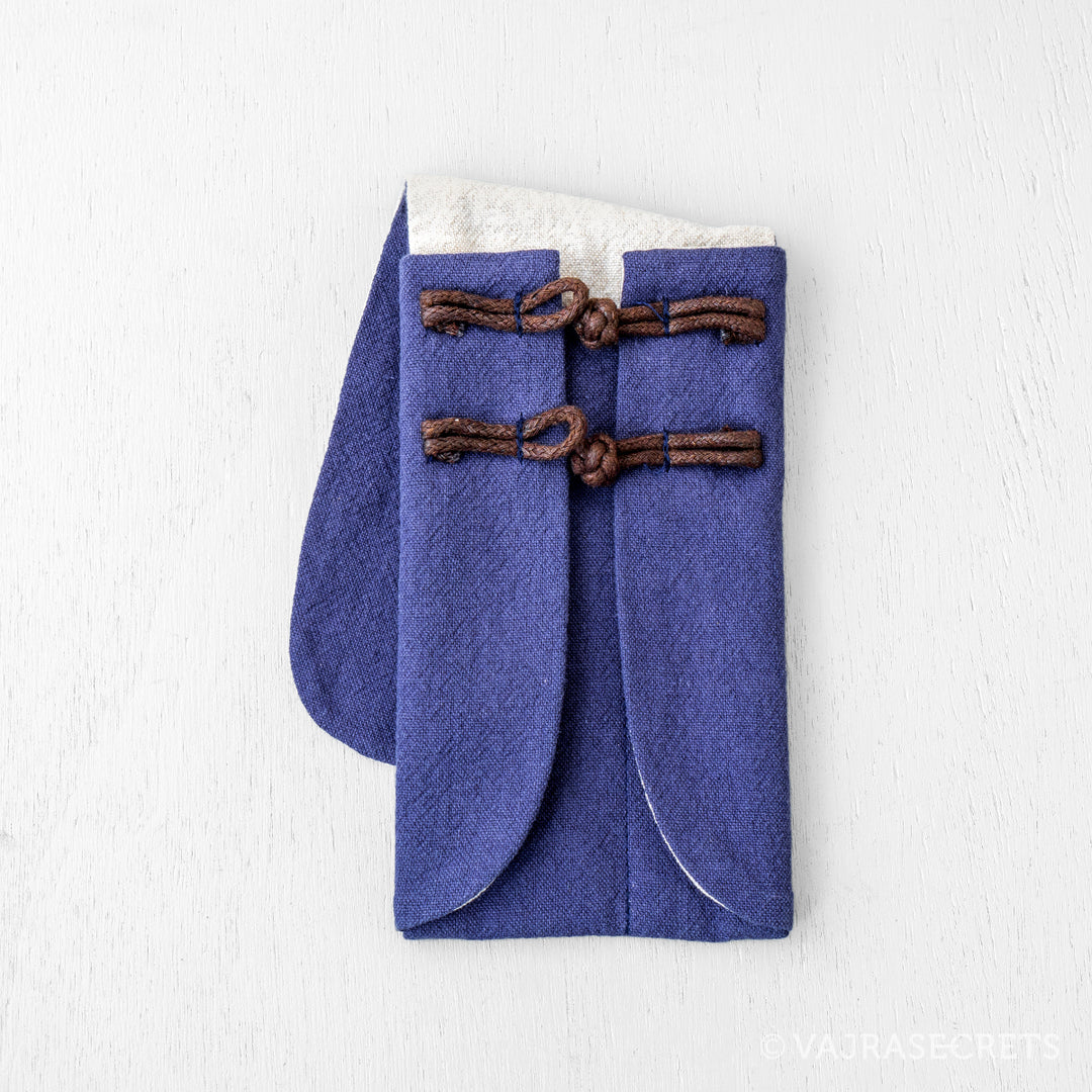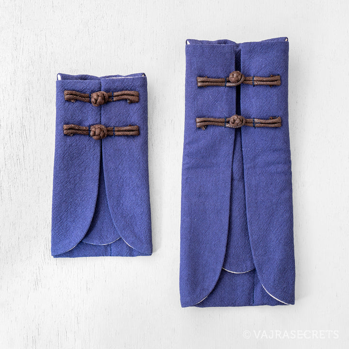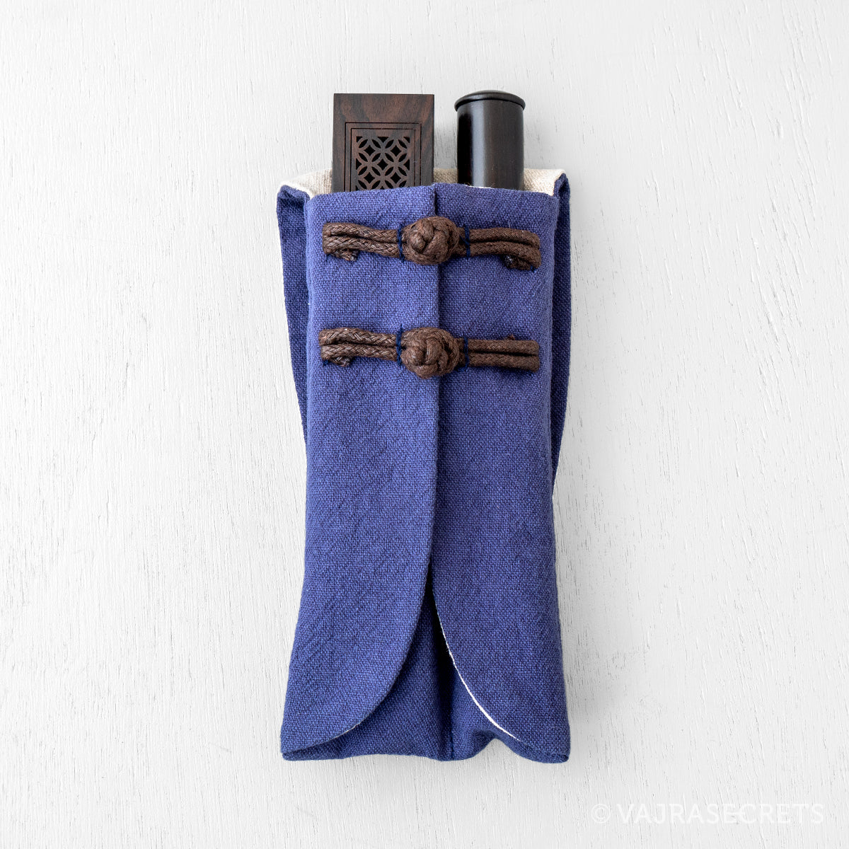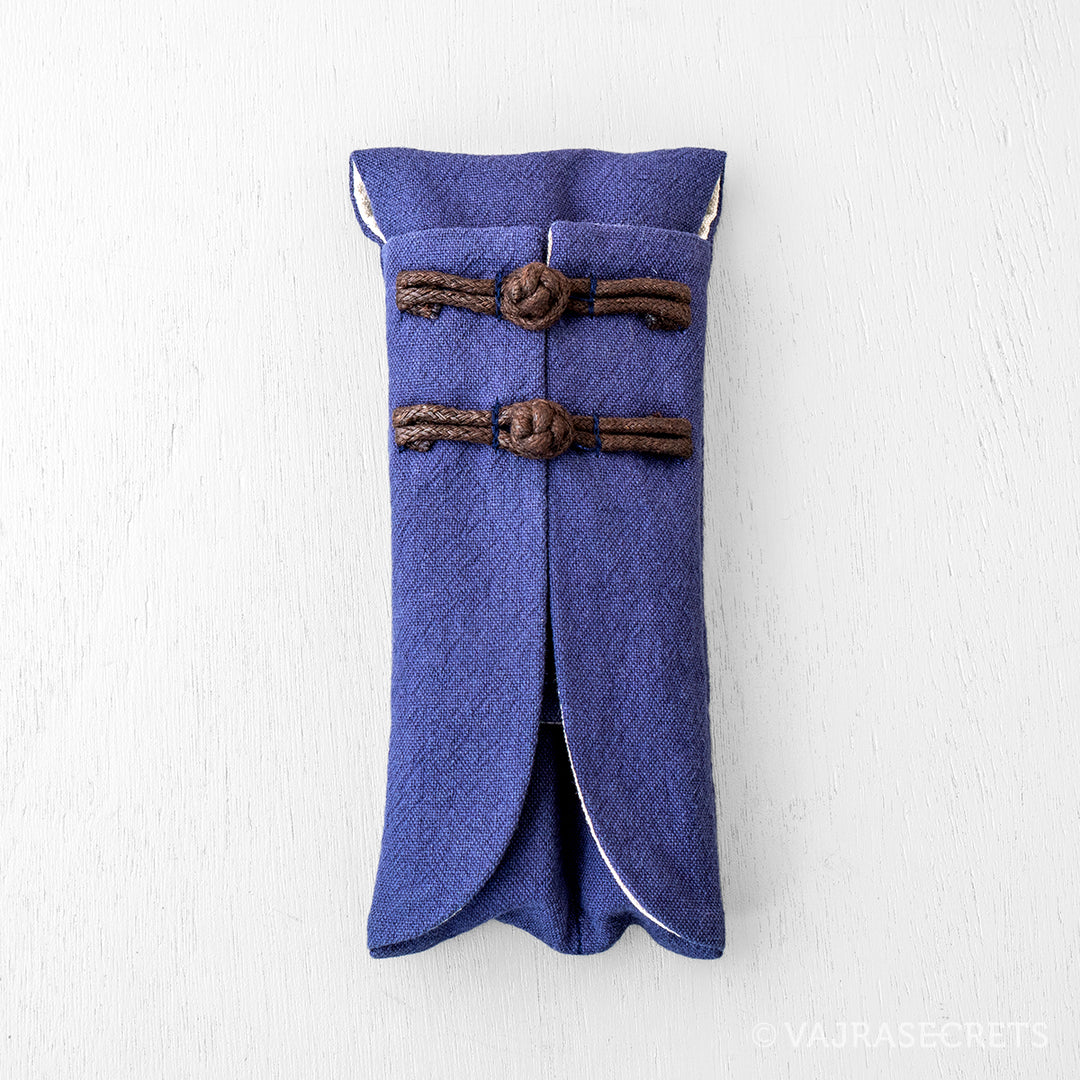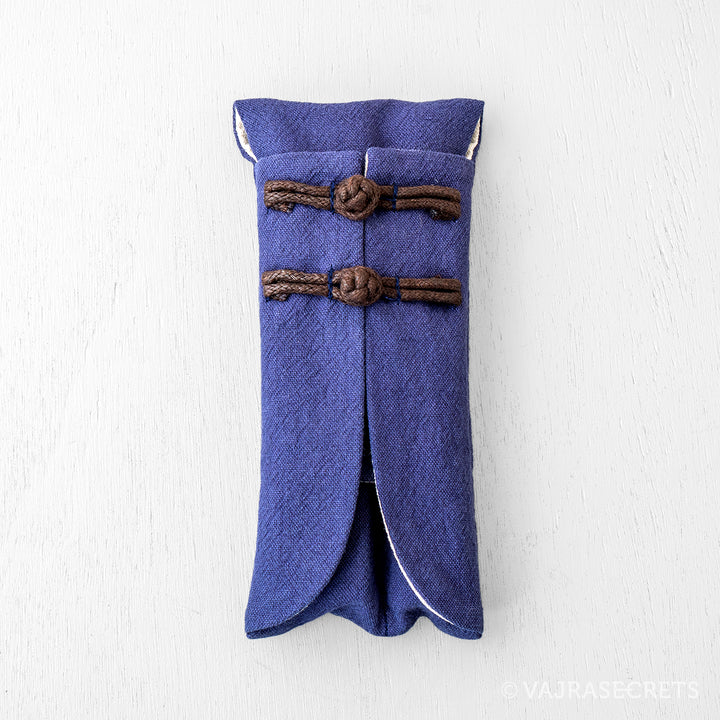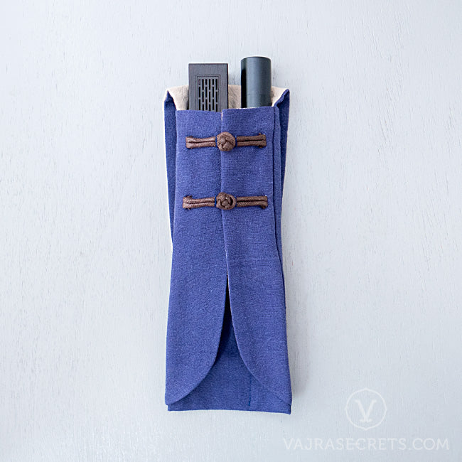 Made from durable cotton, this simple yet stylish Oriental-style travel pouch has two fitted compartments. The wider one fits a low profile incense burner and the smaller one fits a slim incense holder.
