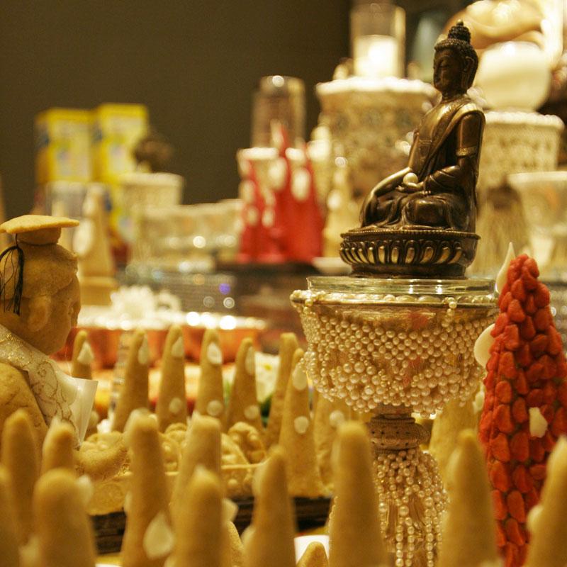 The puja requests Buddha Shakyamuni to “talk” to and bless the spirits before we send them away. Offerings include 100 stupas, 100 candles and 200 tormas to generate tremendous merit for sponsors and to appease the spirits or obstacle-makers.