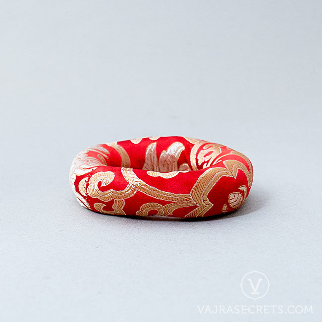A traditional ring-shaped singing bowl cushion made from silk brocade with floral motifs and stuffed with cotton fill. Place this under your singing bowl to protect the base from scratches, dents and accidental movement. Best paired with small-sized singing bowls.