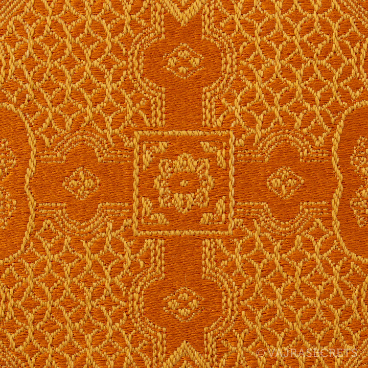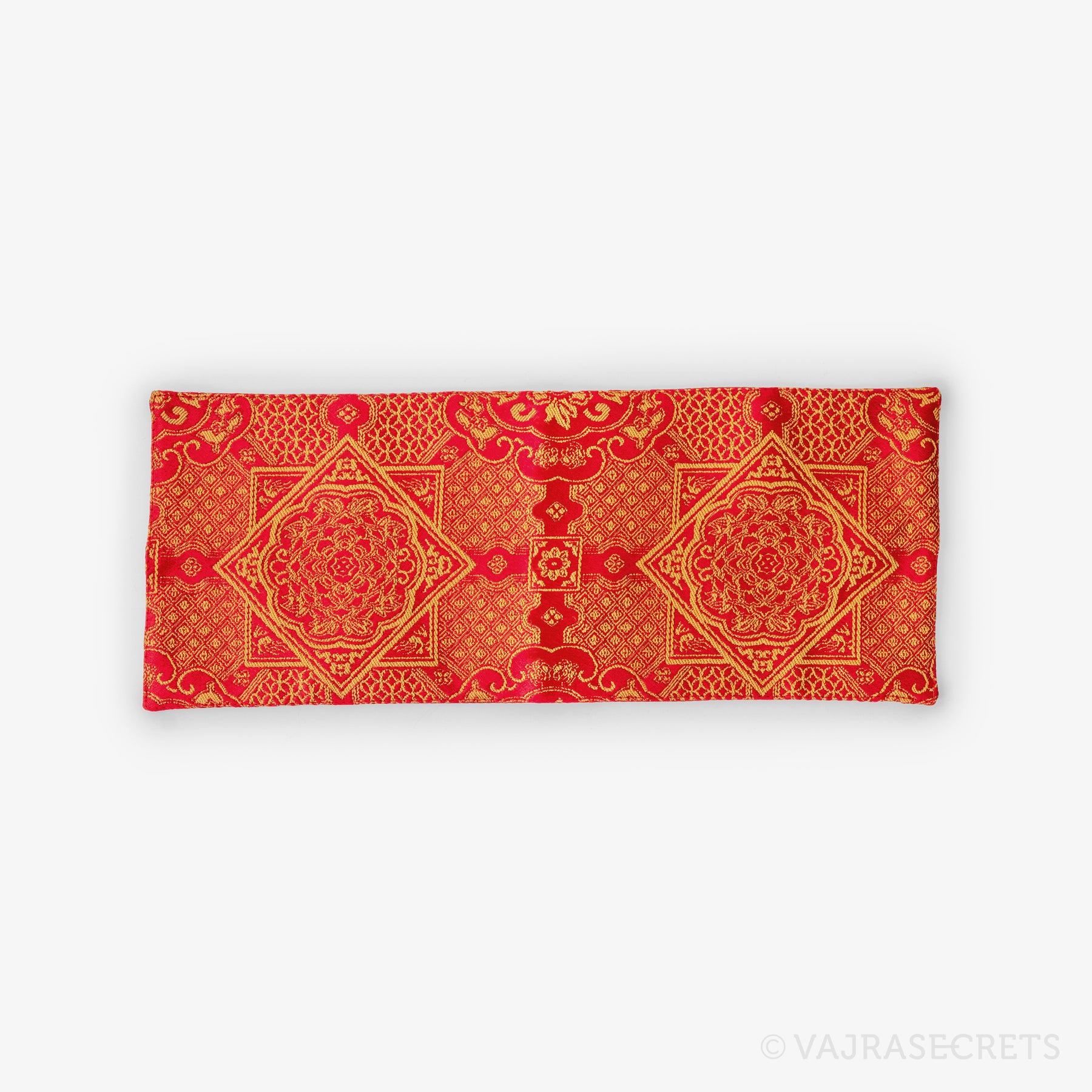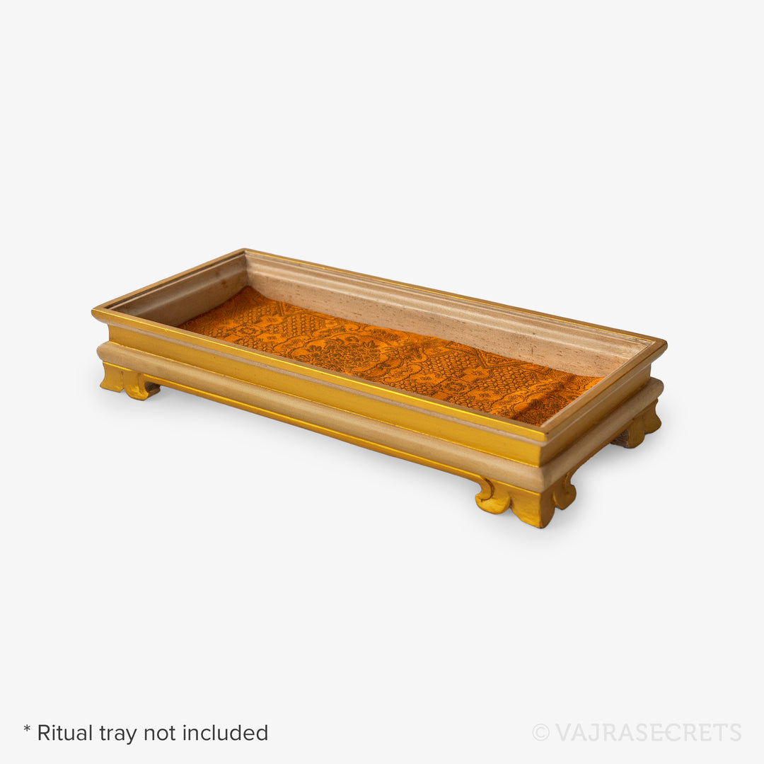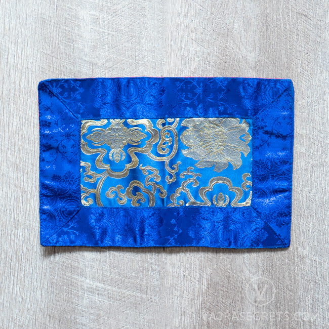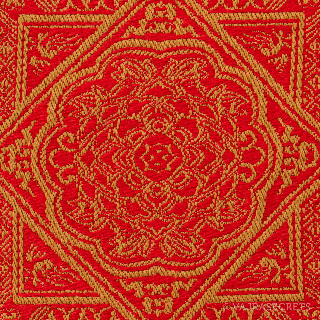 A Tibetan ritual mat to enhance the beauty of your sacred space. Handmade from synthetic silk brocade with traditional motifs, it can be placed in a ritual tray or on your prayer table as a base on which to respectfully place ritual items.