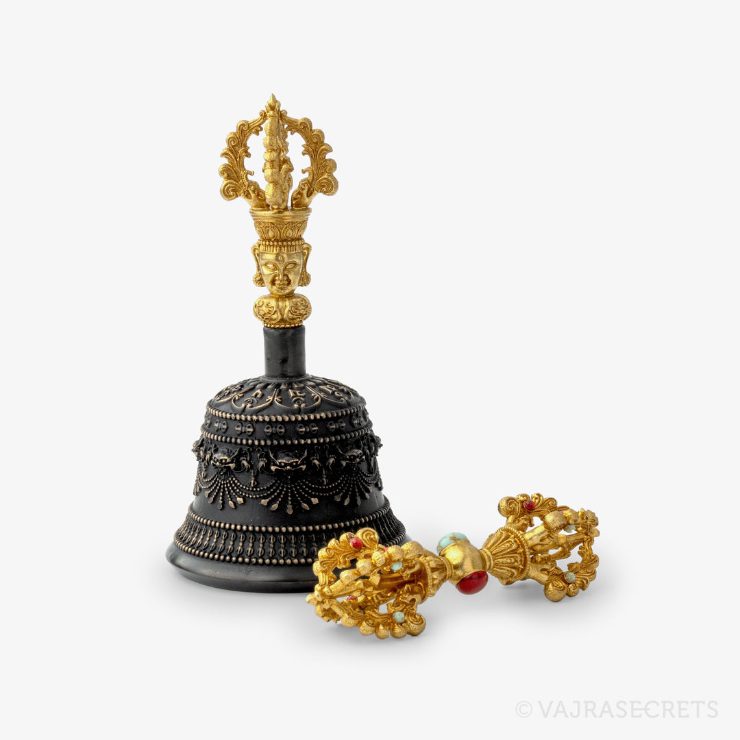 These important ritual implements symbolise the invocation of wisdom and compassion, and the spiritual aspiration to delve deeper into Buddhist practice.