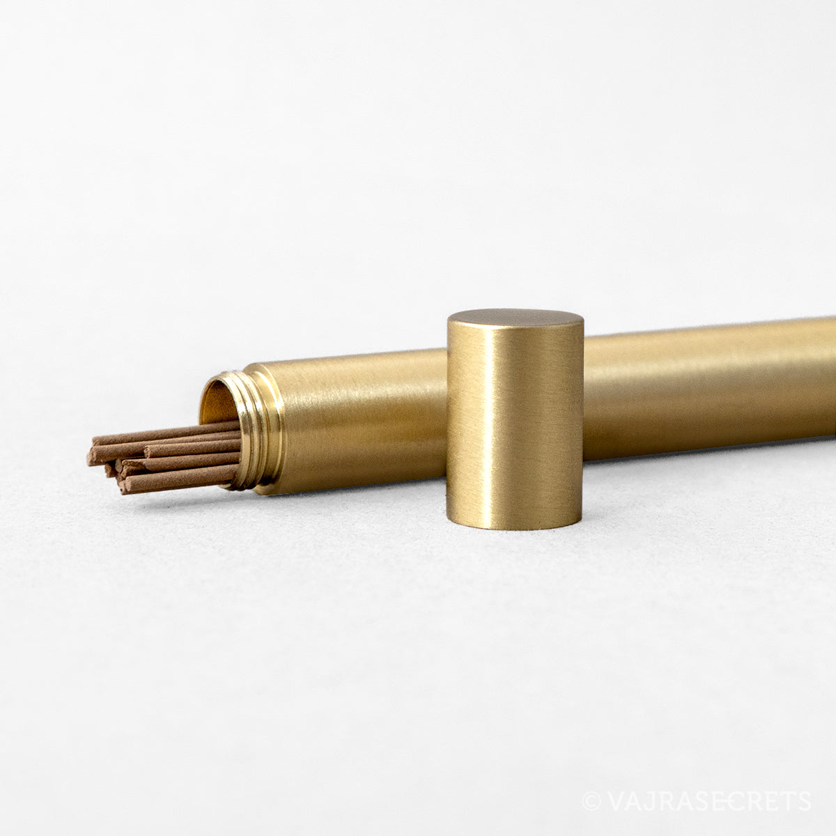 Protect, store and transport your favourite incense sticks with this sleek and compact incense storage tube. Made from durable brass, it is ideal for travelling so that you can make incense offerings, meditate or do space clearing rituals at any place, any time.