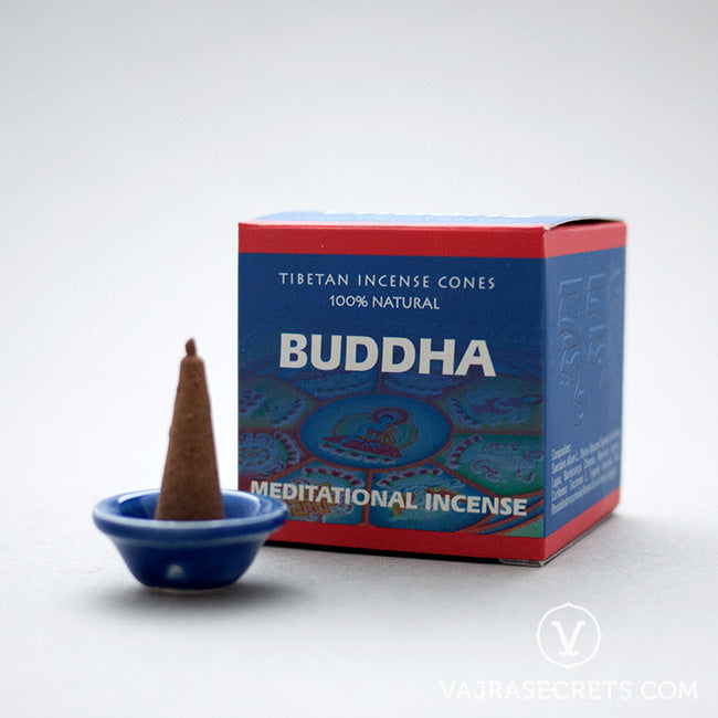 Buddha Tibetan incense cones are traditionally prepared from aromatic herbs, Indian sandalwood and wild saffron. Made according to the great Indian Buddhist scholar Nagarjuna's famous twenty-seven formulas, they are very refreshing for the senses and highly recommended for meditation.