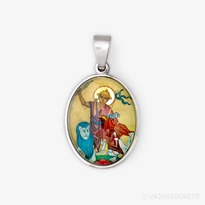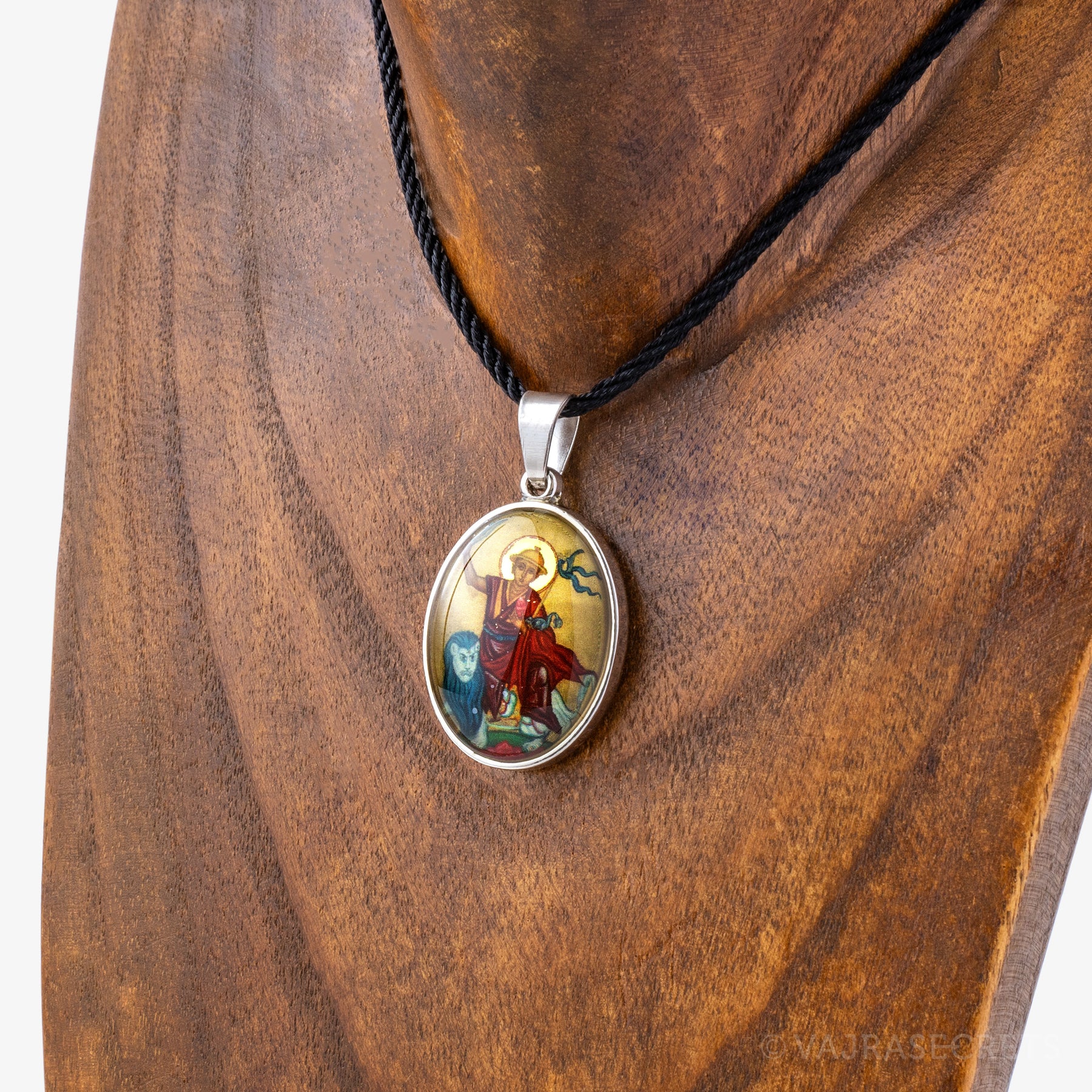 Bring this Byzantine-inspired Dorje Shugden's blessings and protection everywhere you go with this casual and affordable glass dome pendant with gold foil accents. Wear him close to your heart and be blessed with protection, healing, positive situations and fulfilled wishes.