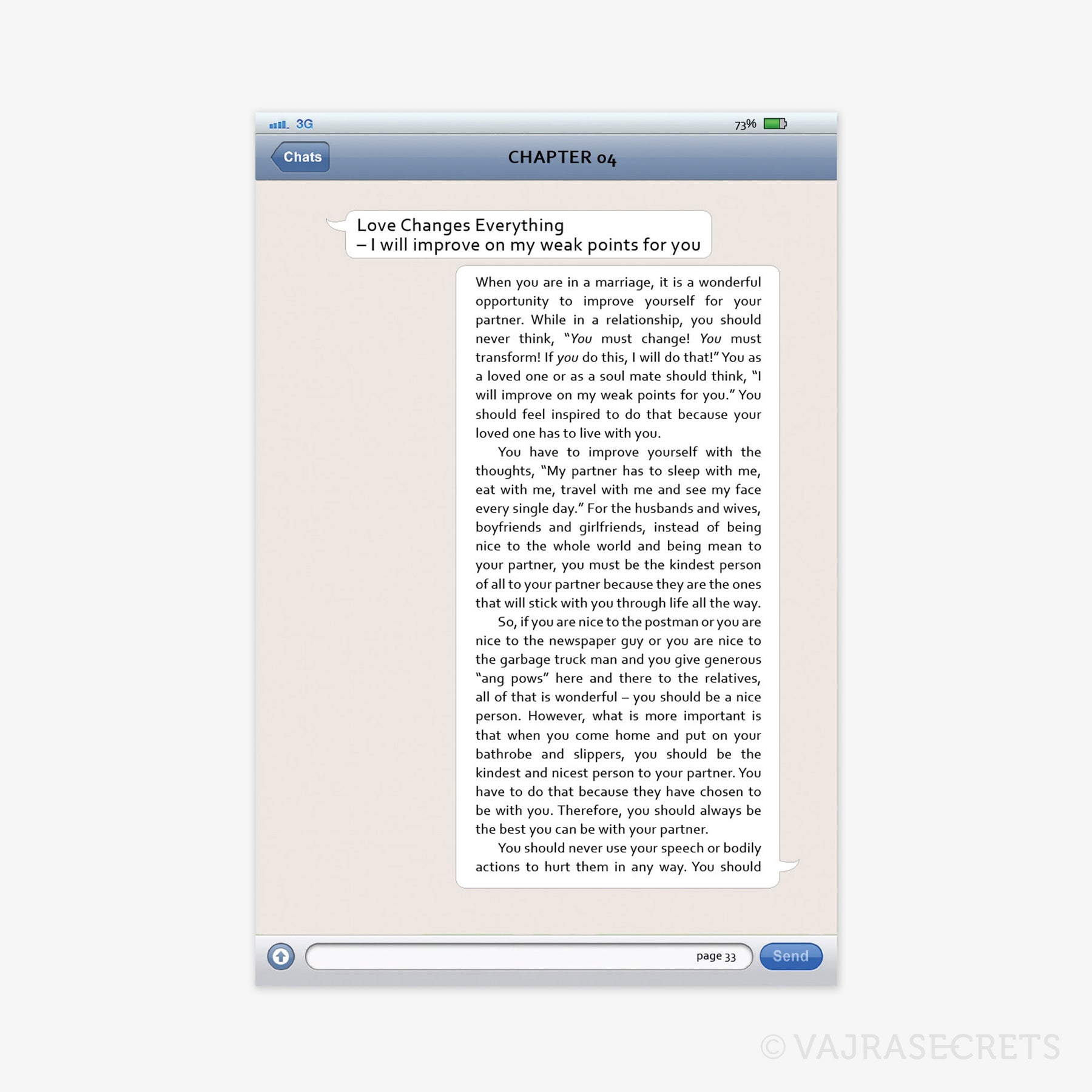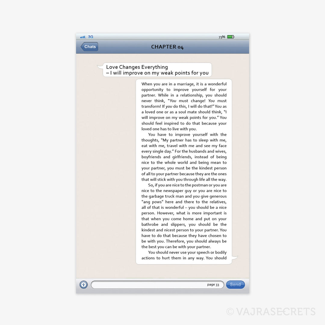 For most people, getting into a relationship and getting married is easily achievable. However, staying married or staying committed in a relationship is another matter altogether. It is an excellent and wonderful growing experience if we make it that way. So, this little book explores this with the brilliant advice of a great master and the candid conversation between four very unique individuals. Their conversation explores real issues and practical solutions that are relevant and applicable to any couple today.