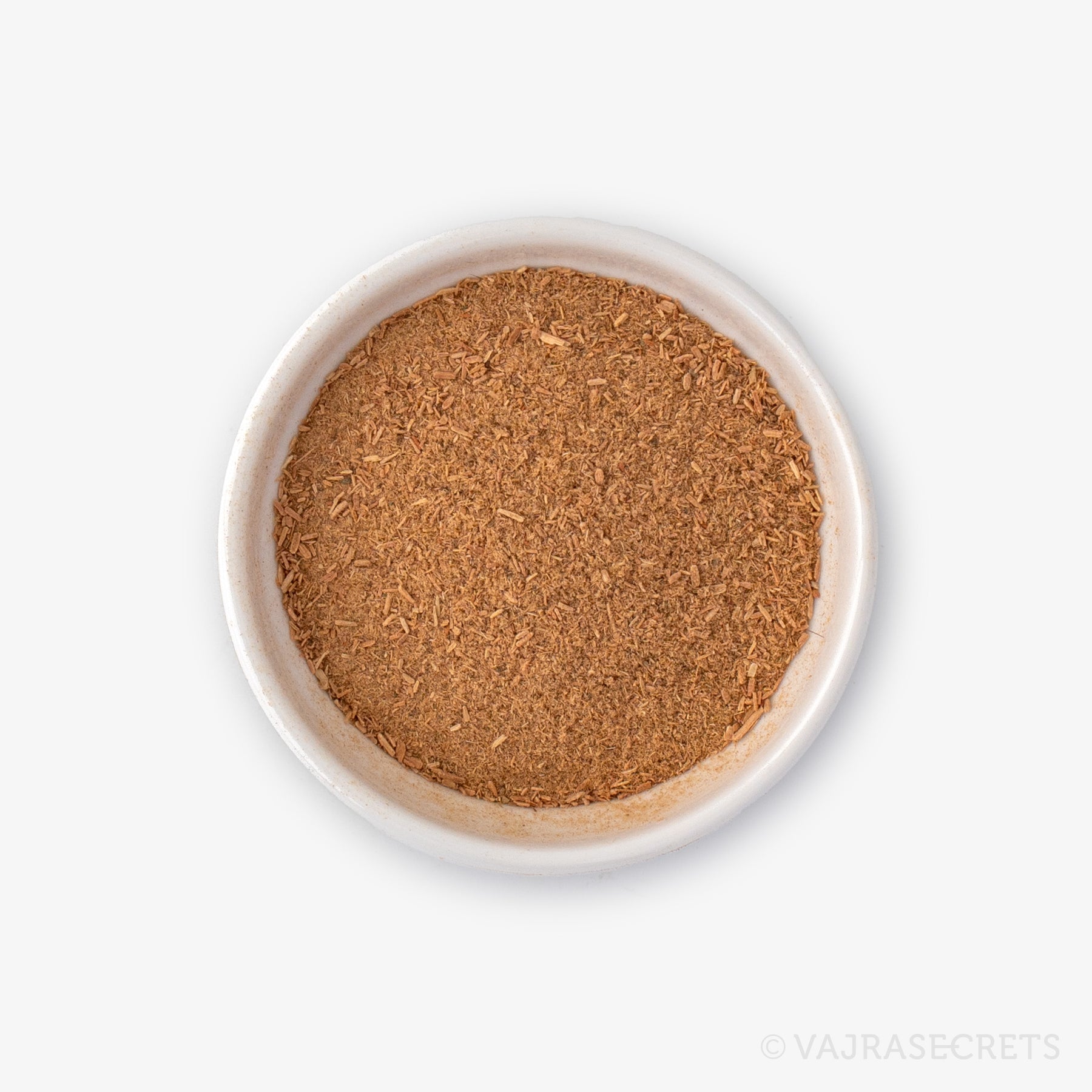 Dorje Shugden Tibetan Incense Powder is handmade from medicinal herbs, oils, resins and spices from the Himalayan mountains, following a strict formula found in ancient scriptural texts. When burnt, it releases a woody and herbal aroma.