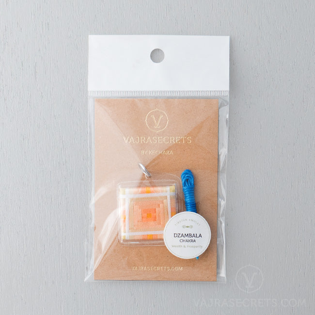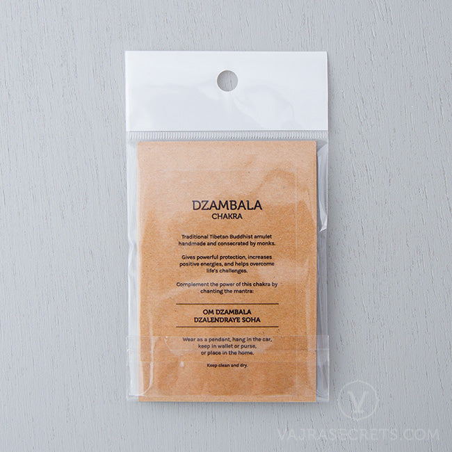 A traditional Tibetan Buddhist amulet containing the essence, power and wealth attracting energies of the enlightened deity Dzambala, the Buddha of Wealth. Handmade and consecrated by monks, the Dzambala chakra is effective for attracting material and spiritual wealth, and helps overcome an inner emotional poverty: miserliness, greed and the inability to give or share. It also bestows powerful protection, increases positive energies, and helps overcome life's challenges.