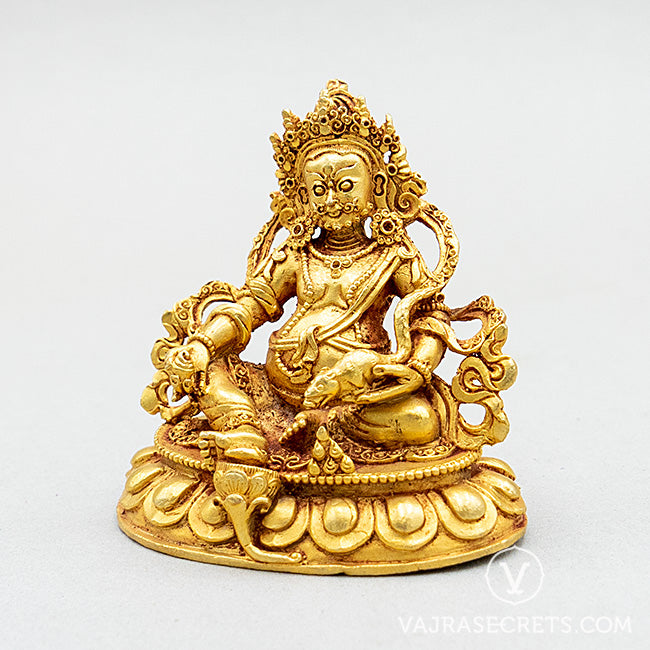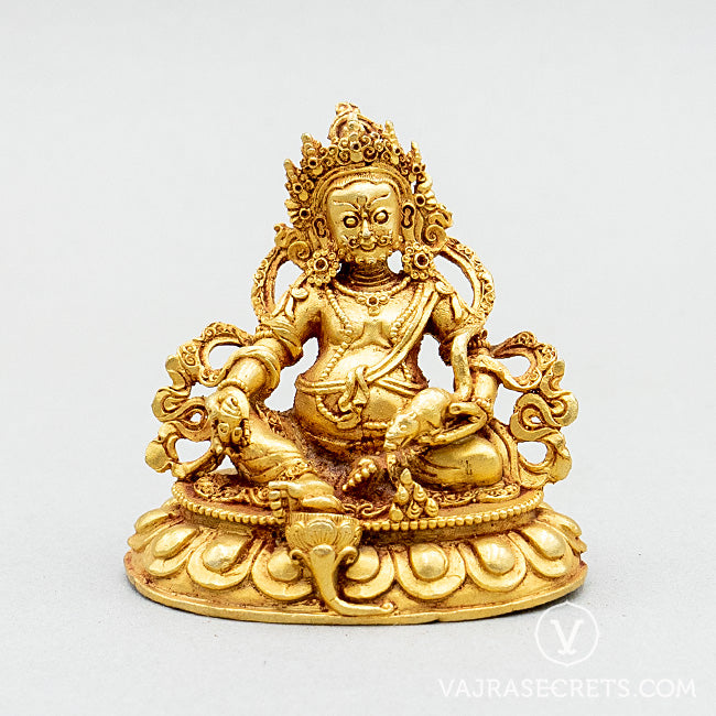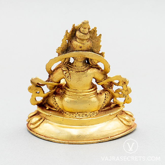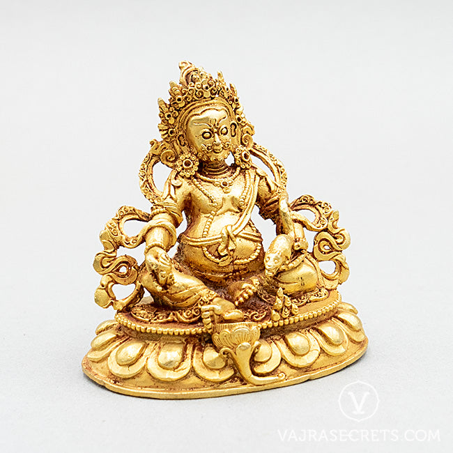 A miniature copper statue of Yellow Dzambala, who brings material wealth, spiritual wealth and helps overcome financial challenges. A perfect addition to a small shrine at home, in the workplace, or as part of a portable travel altar.