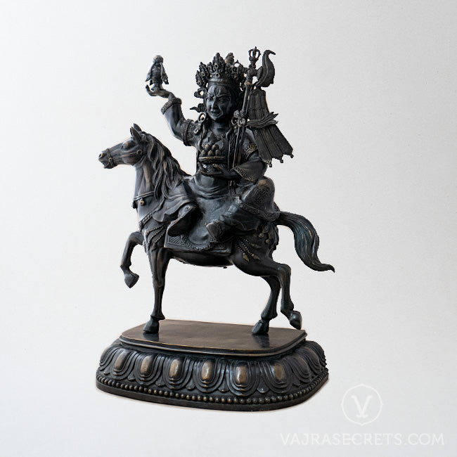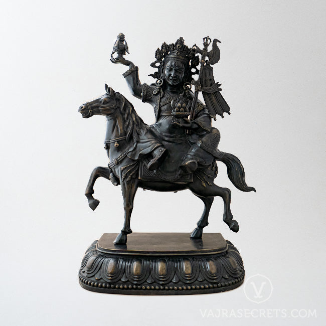 A brass statue of Gyenze, the “increase” form of Dorje Shugden, revered by many for his ability to increase material resources, lifespan, merit and realisations. His image also calms the immediate environment, helps overcome life's obstacles, and grants protection from negative energies. It is an excellent focal point and meditation aid for your daily practice.
