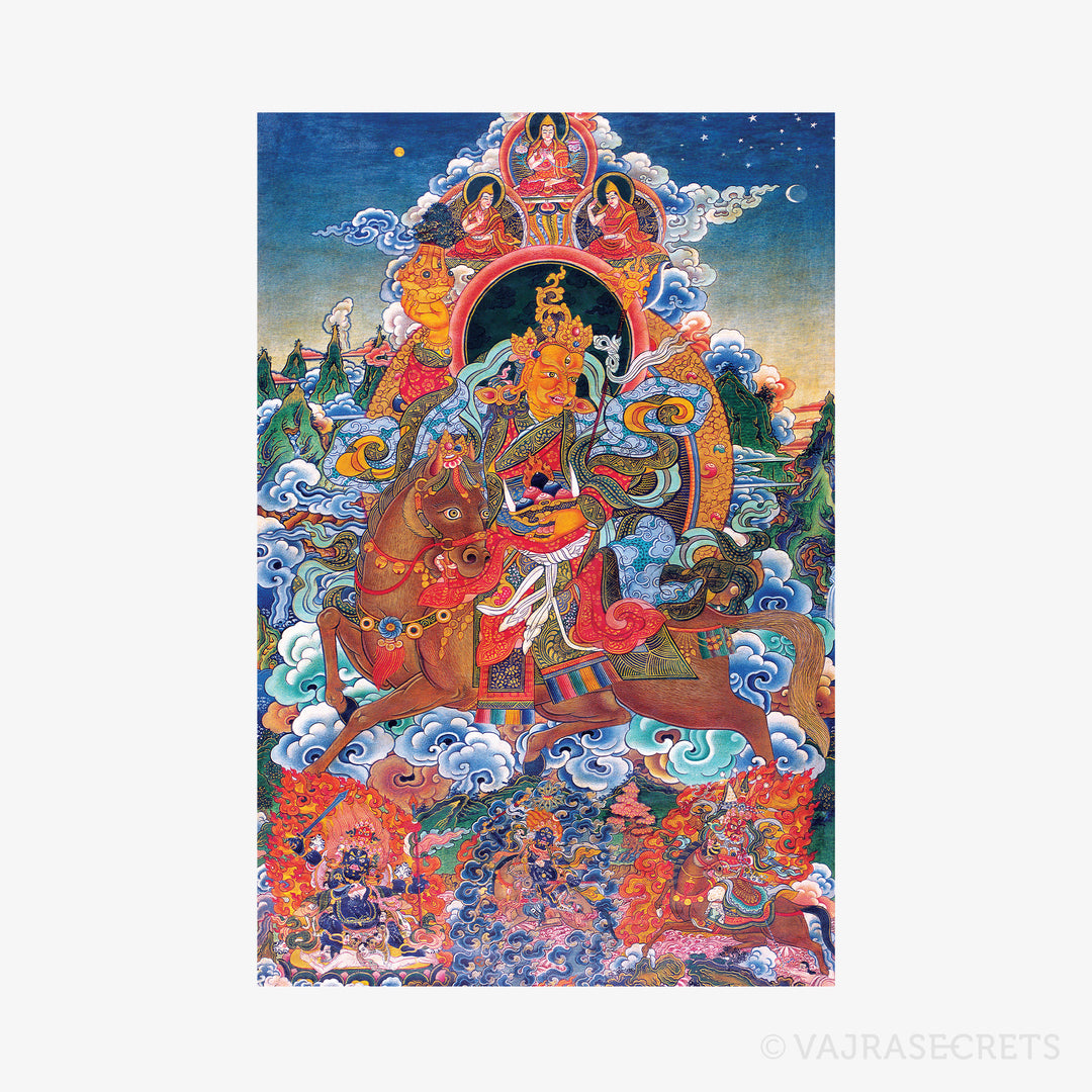 A high-quality thangka print of Gyenze, the "increase" form of Dorje Shugden, who is revered by many for his ability to increase material resources, life, merit and realisations. His image also calms the immediate environment, helps overcome life's obstacles, and grants protection from negative energies.