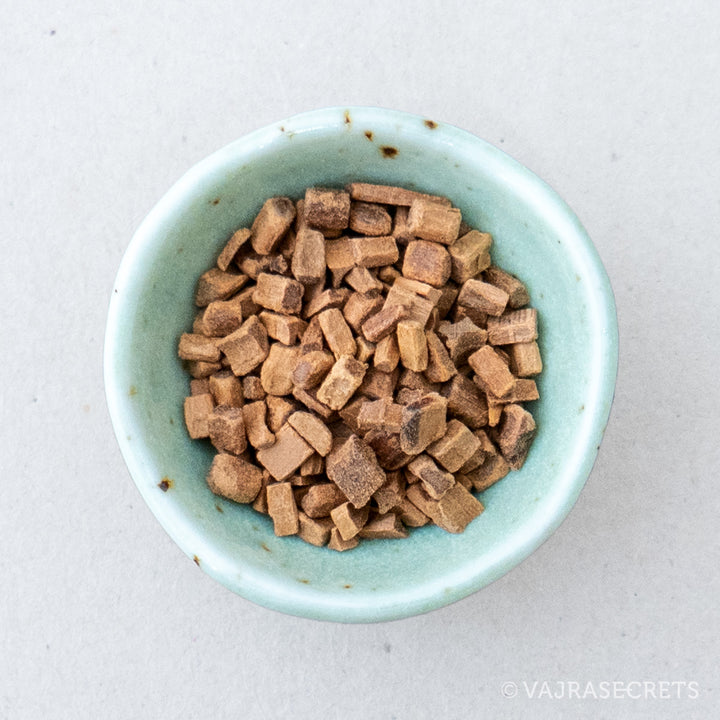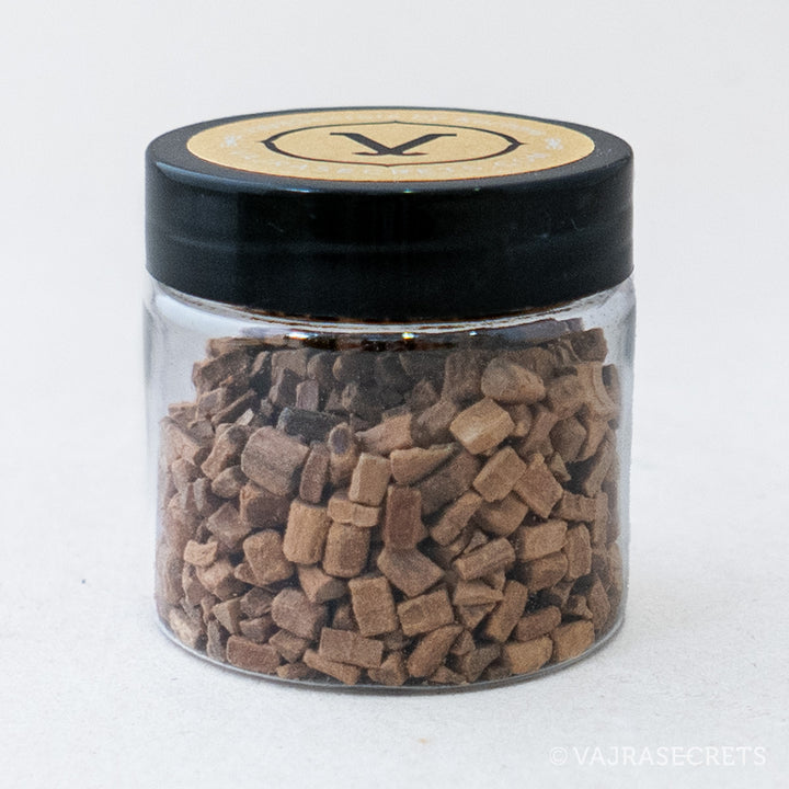 A high quality incense chips made from premium grade Indian Sandalwood. When burnt, it produces a warm, rich scent. It creates a calm, ethereal ambience that promotes awareness, relieves nervous tension and anxiety, and helps with depression. Use in spiritual offering ceremonies, to purify the environment of bad energy, and to aid meditation and stress-relief.