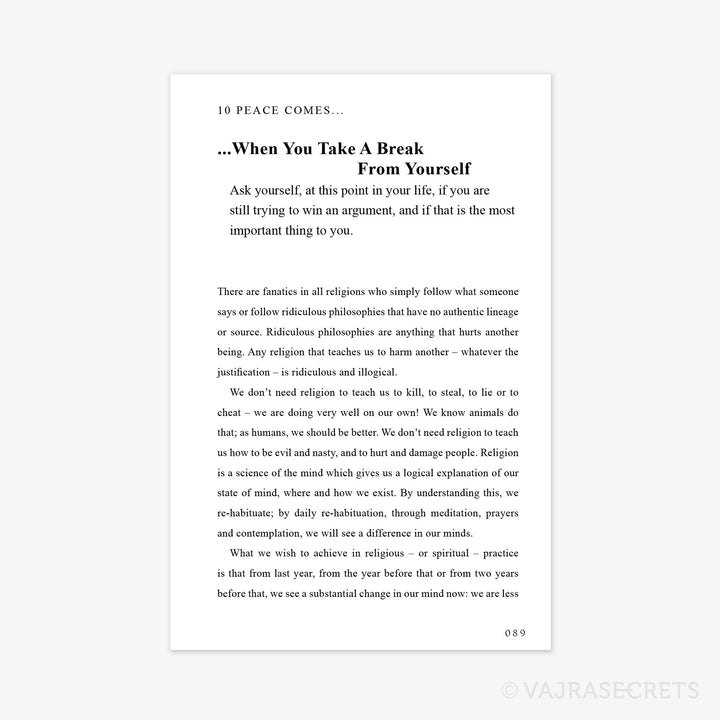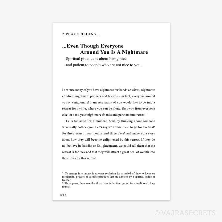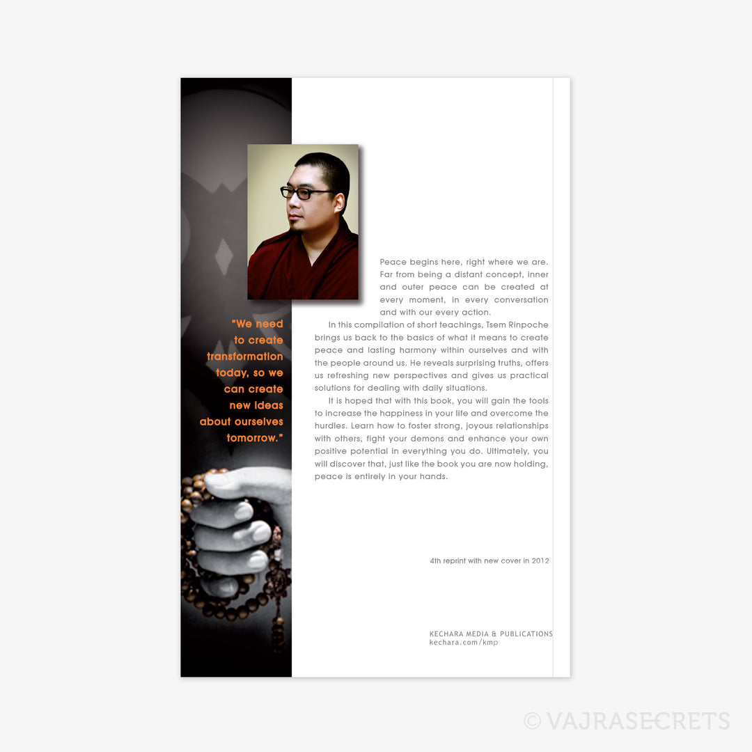 In this compilation of short teachings, Tsem Tulku Rinpoche brings us back to the basics of what it means to create peace and lasting harmony within ourselves and with the people around us. He reveals surprising truths, offers us refreshing new perspectives and gives us practical solutions for dealing with daily situations.