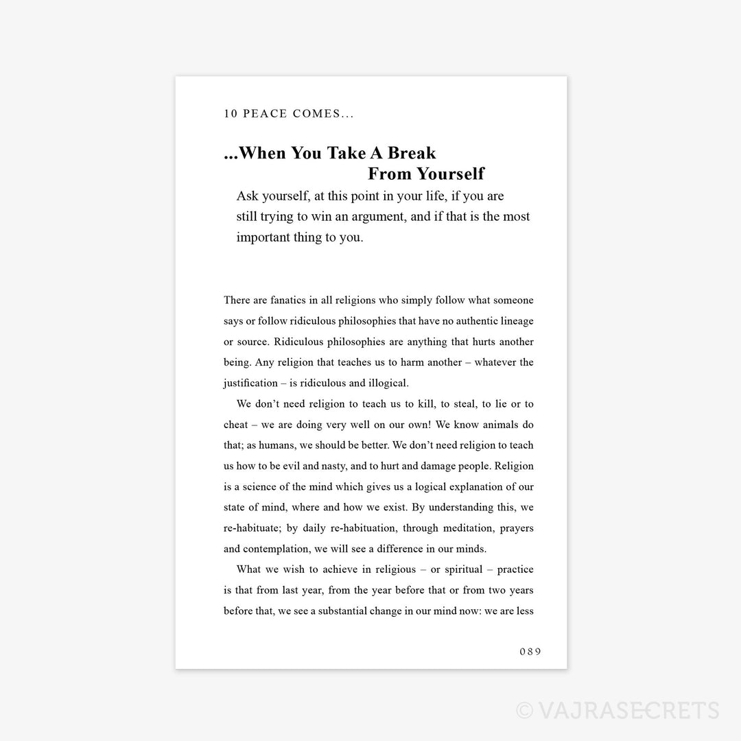 It is hoped that with this book, you will gain the tools to increase the happiness in your life and overcome the hurdles. Learn how to foster strong, joyous relationships with others, fight your demons and enhance your own positive potential in everything you do. Ultimately, you will discover that, just like the book you are now holding, peace is entirely in your hands.