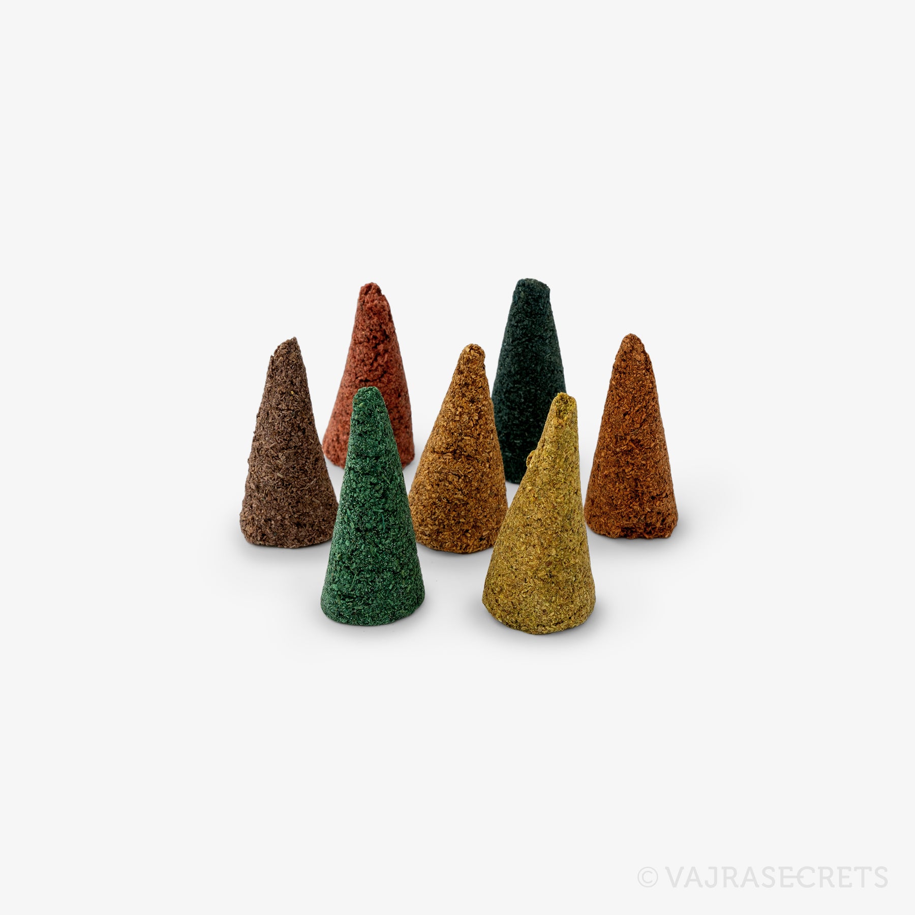 When burnt, these natural incense cones release a sweet, long-lasting aroma with notes of pine and citrus, complemented by the fragrance of pure essential oils and Peruvian mountain herbs.