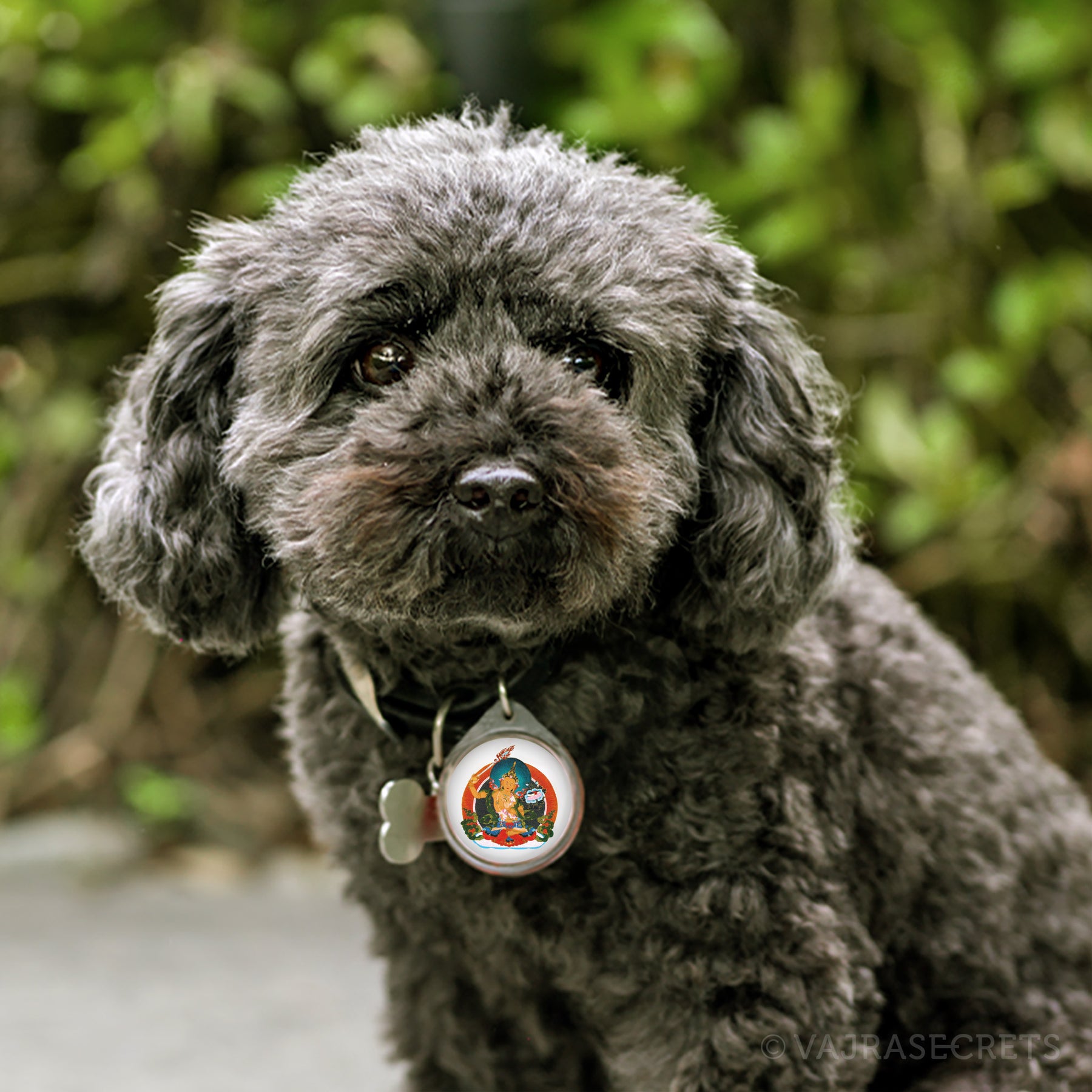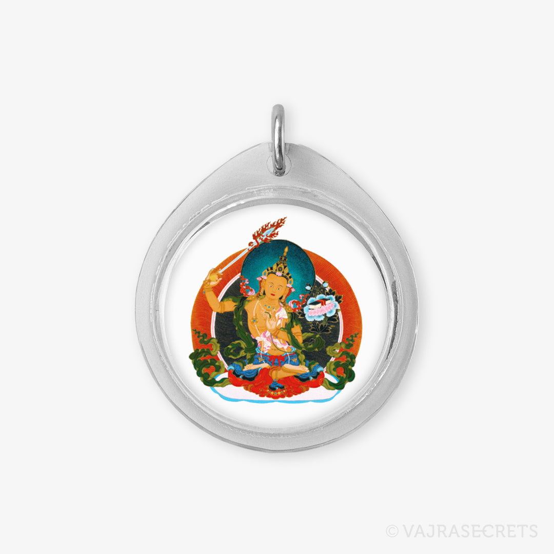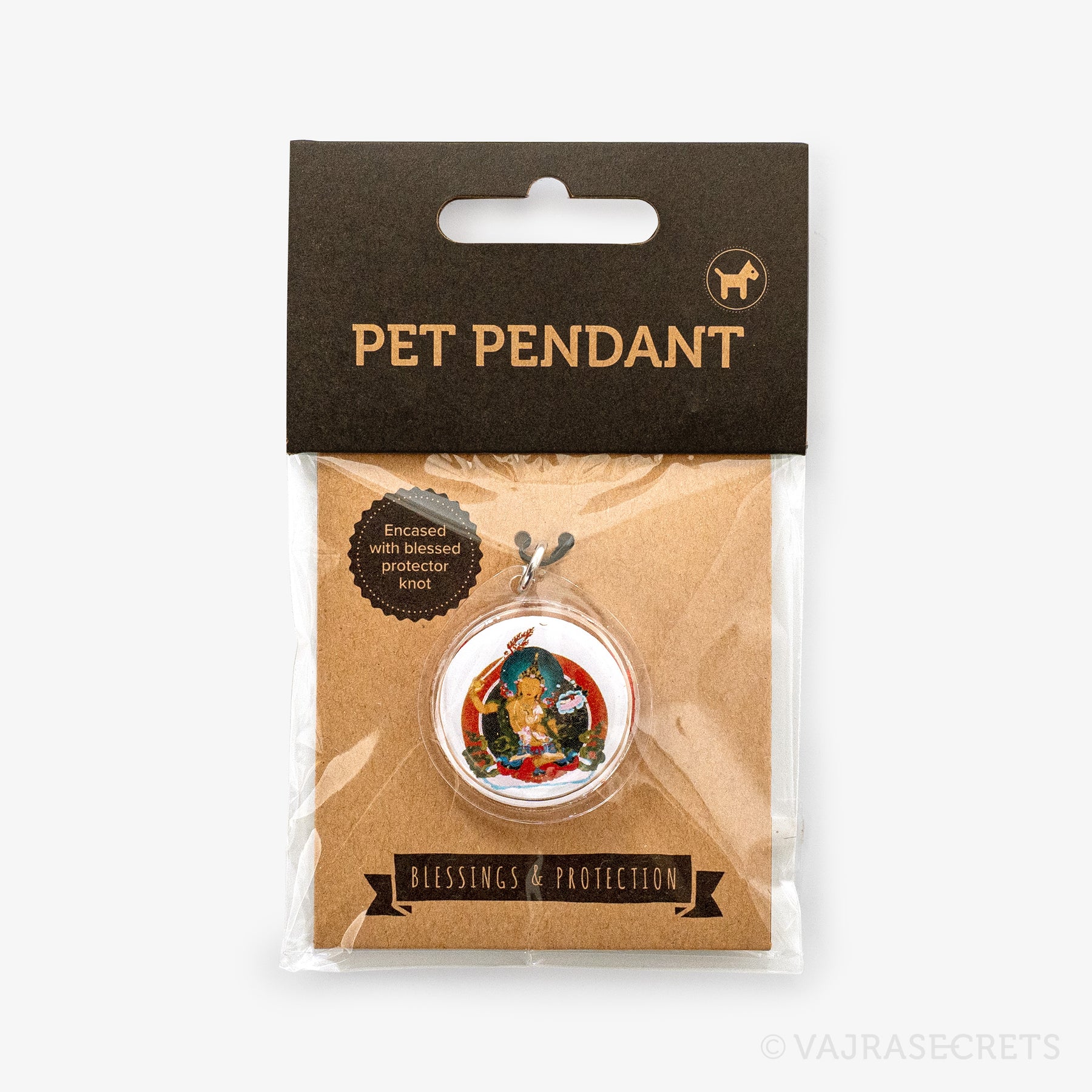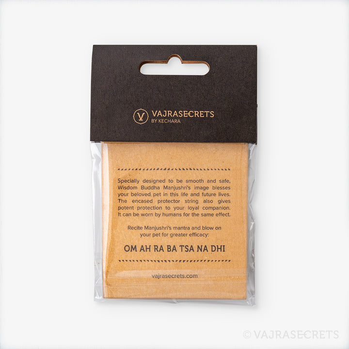 Give your furry companion Manjushri's blessings and protection everywhere they go with this one-of-a-kind pet pendant. Featuring the Wisdom Buddha Manjushri's image and a protector knot blessed by the Dharma protector of Kechara during trance in the monastery. Wear this close to your pet's heart and let this unique pendant bless your beloved pet in this and future lives.