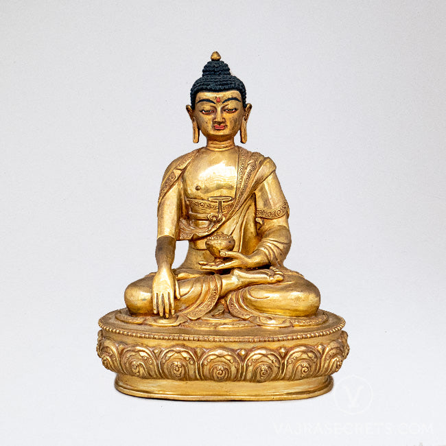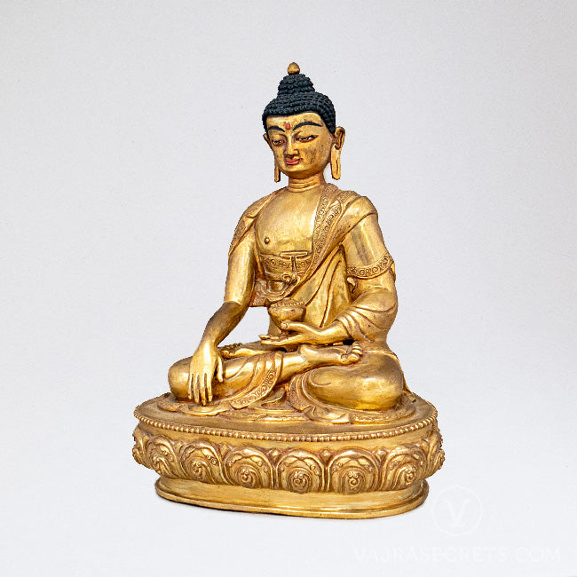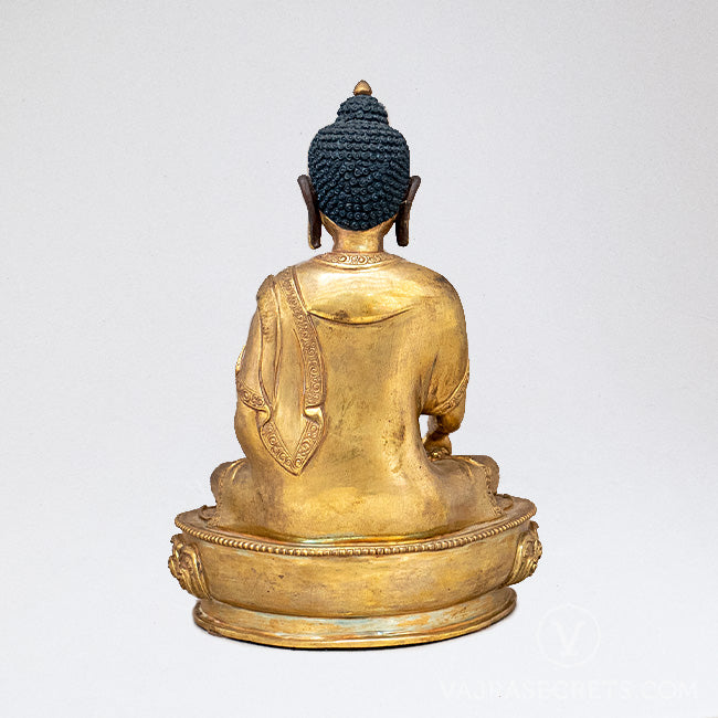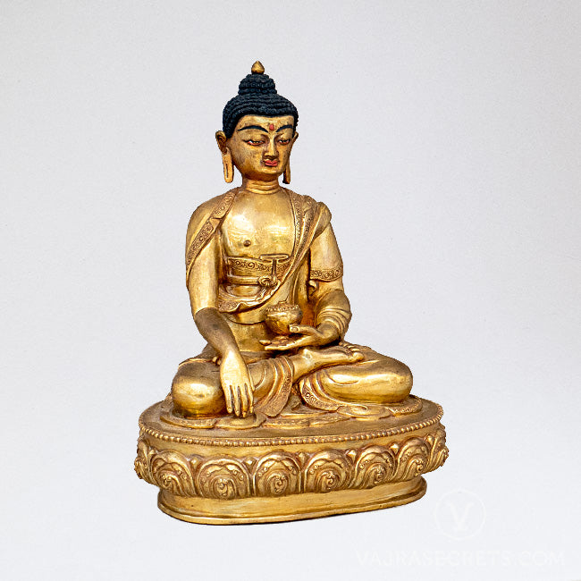 A handcrafted copper statue of The Awakened One, Buddha Shakyamuni, completed with hand-painted traditional deity features. Buddha Shakyamuni has taught 84,000 methods to Enlightenment to suit all possible dispositions and levels of spiritual seekers. Suitable as an object of veneration for a home shrine or workplace altar, and for anyone who would like to tap into Shakyamuni's peaceful energy.