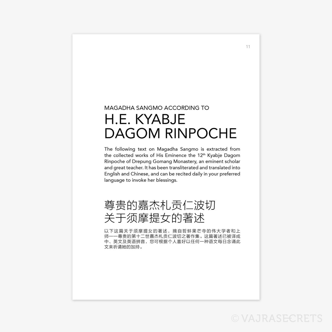 Compiled by H.E. Tsem Rinpoche, this book is a collection of sutras devoted to her legend and deeds. Based on materials sourced from Tibetan, Chinese, Sanskrit and Pali scriptures, this bilingual daily sutra recitation book is highly recommended for all to invoke her energy and tap into her blessings. No initiations or heavy commitments are necessary to engage in this practice.