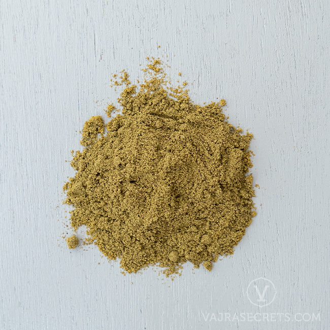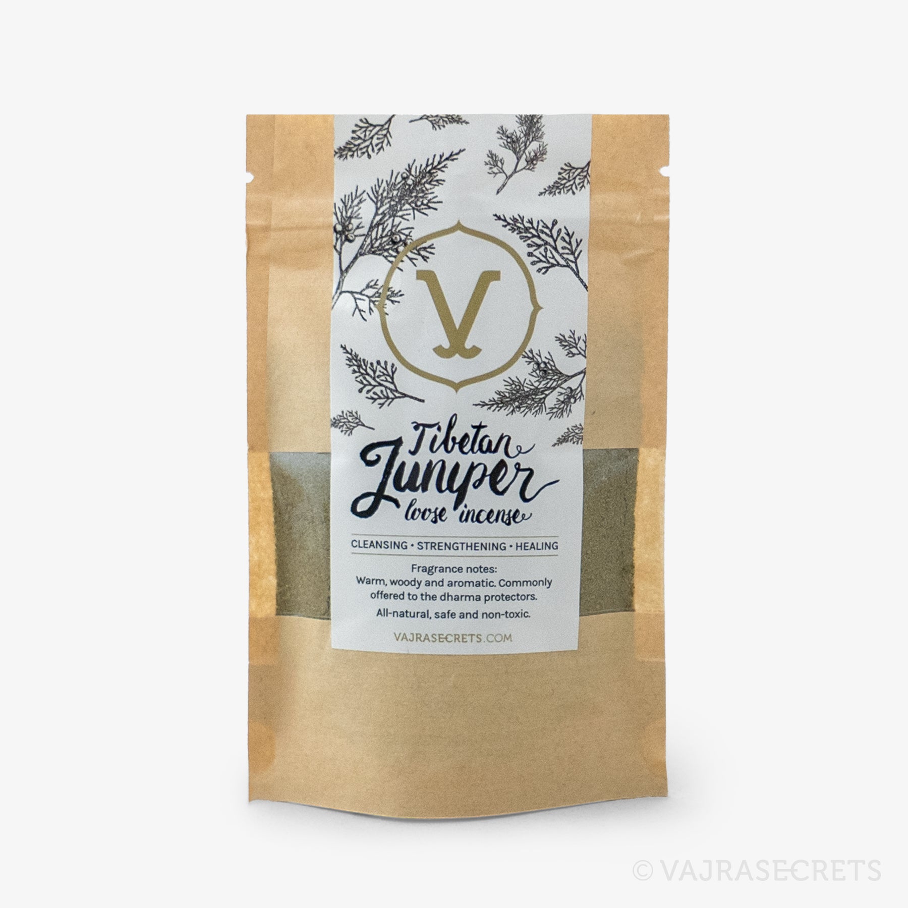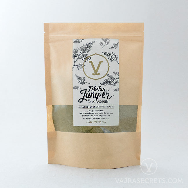A traditional Tibetan Juniper Incense Powder, harvested from the evergreen Tibetan Juniper tree which grows at the highest altitudes in the Himalayan mountains. When burnt, it produces a distinct fresh, earthy and grassy scent. It can also ward off contagious diseases, calm the nerves, stimulate the respiratory system, and increase mental alertness. Use in spiritual offering ceremonies, to purify the environment of bad energy, and to aid meditation and stress-relief.