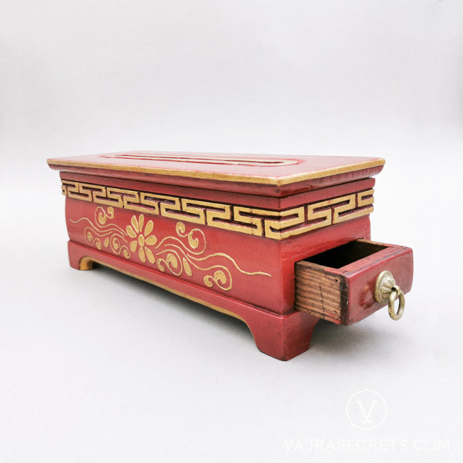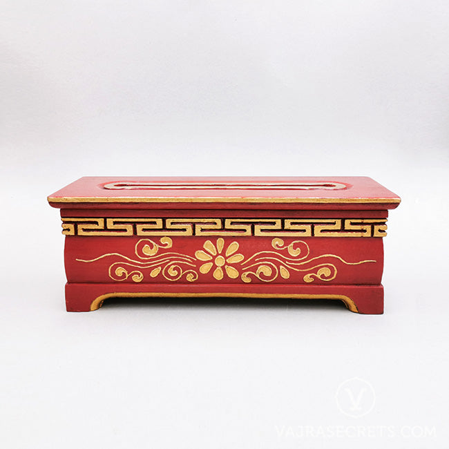 Tibetan Wooden Incense Burner with Gold Floral Motif (Large)