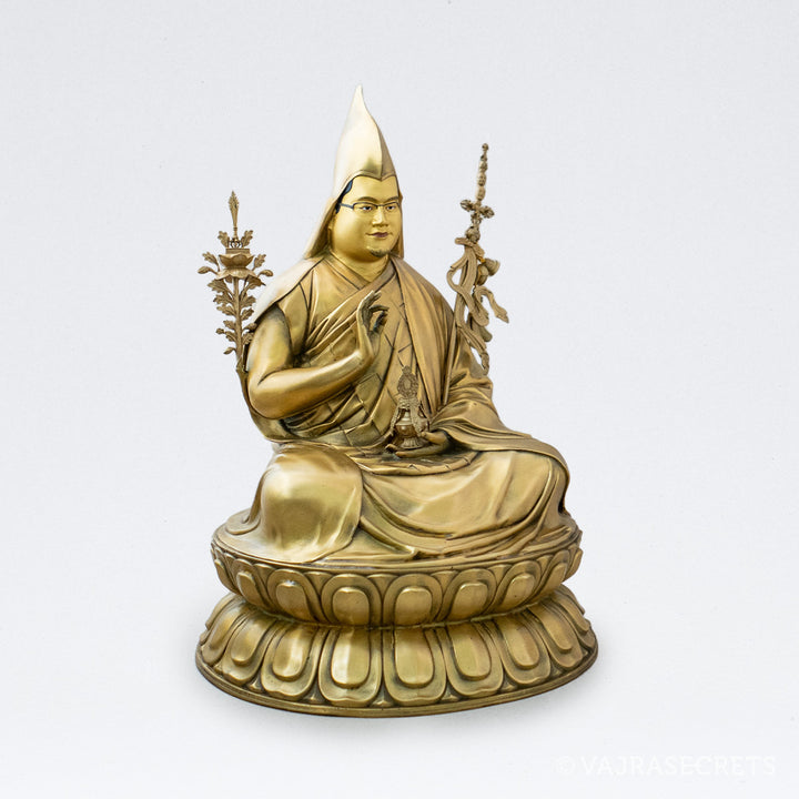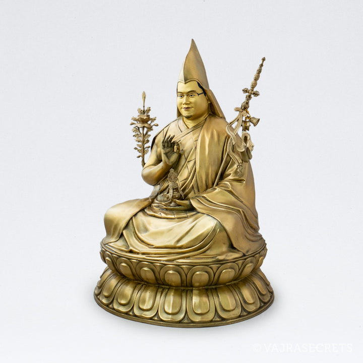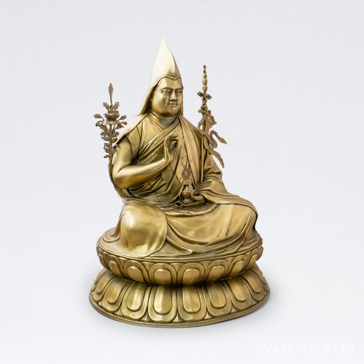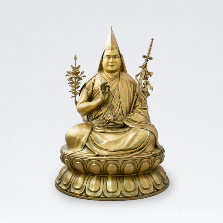 A life-like brass statue of His Eminence the 25th Tsem Rinpoche, a world-renowned Buddhist teacher from a long line of Indian, Nepali and Tibetan Buddhist masters dating back to over 2,500 years ago, and a beloved founder and spiritual guide of Kechara. The guru’s image is an essential element of every Buddhist altar, to invoke his blessings for spiritual growth, and empower your practice with the blessings of the guru and lineage.