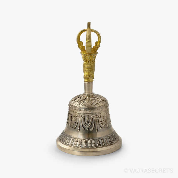 A handcrafted five-pronged vajra and bronze alloy bell with a resonant sound that is deep for its size. Suitable for those who prefer a deeper tone and louder volume.