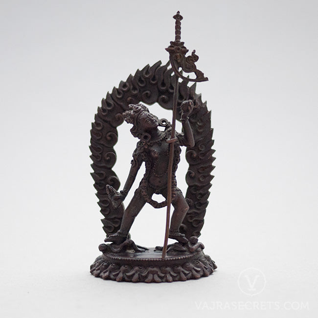 An oxidised statue of Tantric Buddha Vajrayogini in Naro Kachö form, whose image pacifies our immediate environment, clears negative energy and protects from negative interferences. Making offerings to her image makes a connection with this extremely potent Vajrayogini Buddha, as her blessings become more powerful as times degenerate. It is an excellent focal point and meditation aid for those aspiring to advance to higher tantric practices such as hers. Suitable for small shrines at home, in the workplace, or as part of a portable travel altar.